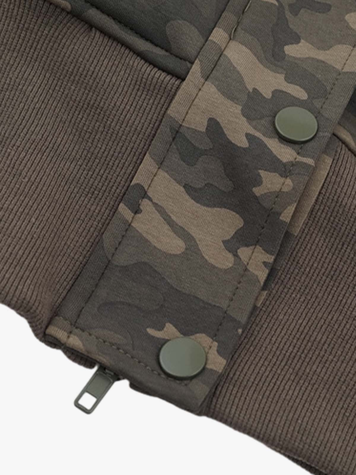 Camouflage Cardigan Utility Zip Up Fur Hooded Jacket