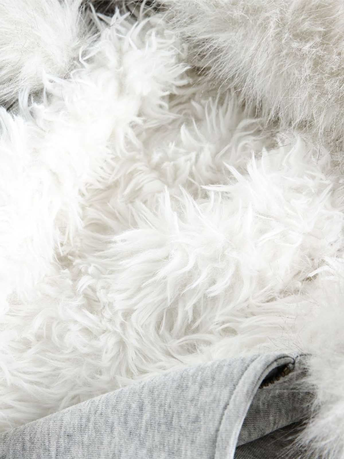 • Design Elements: Faux fur-lined hood, front zipper closure, two side pockets