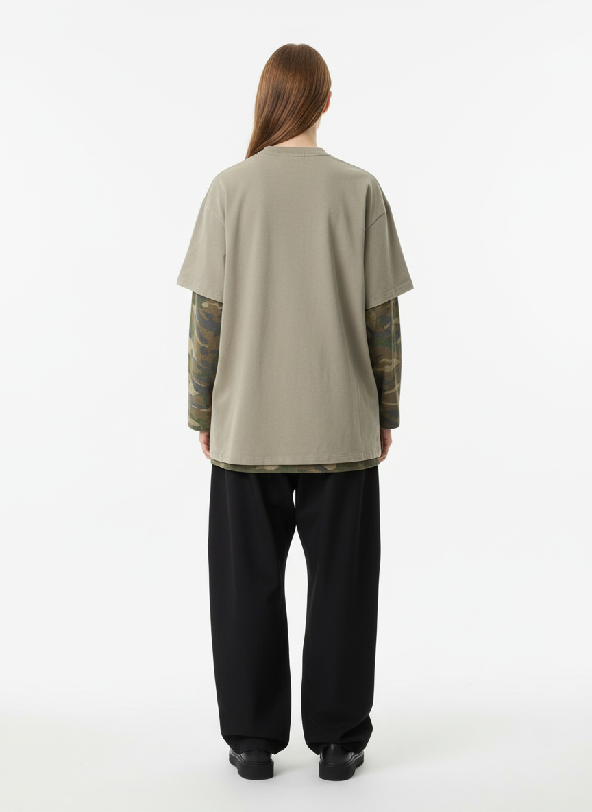 Jersey Distressed Camouflage Faux Two-Piece Graphic T-Shirt - 2420