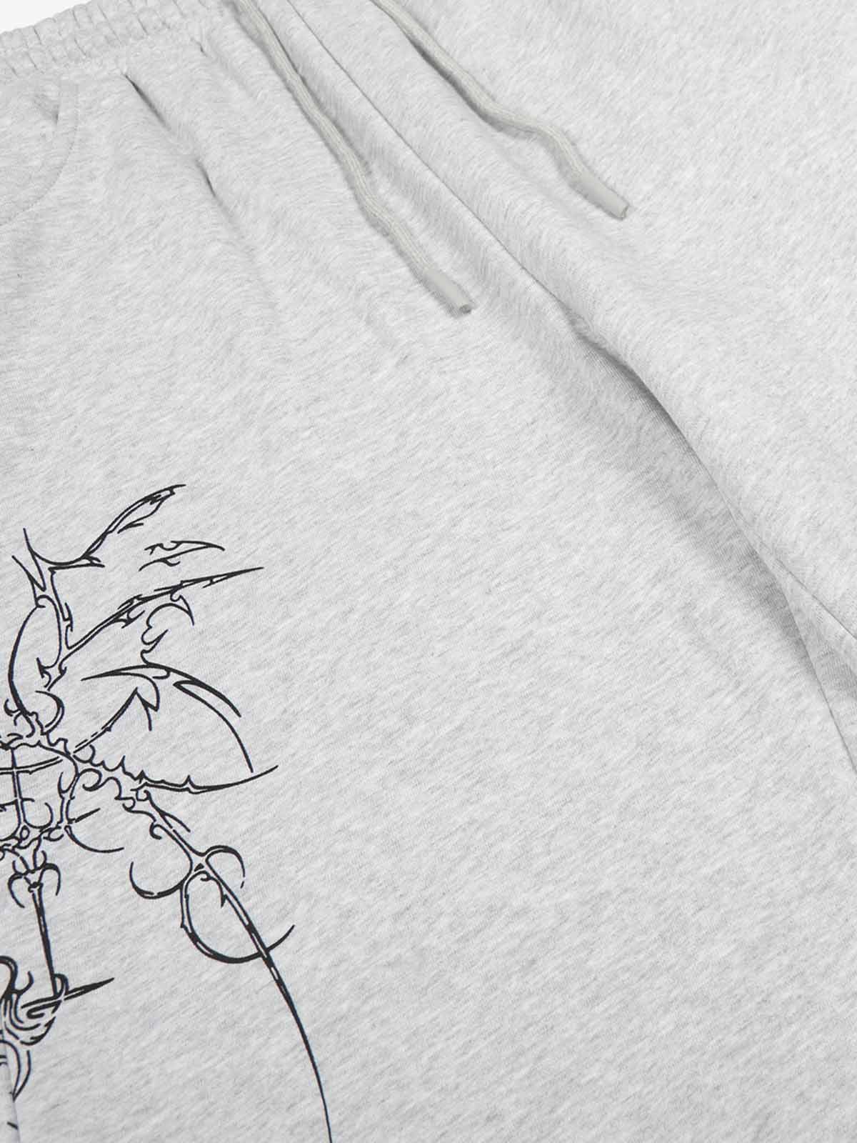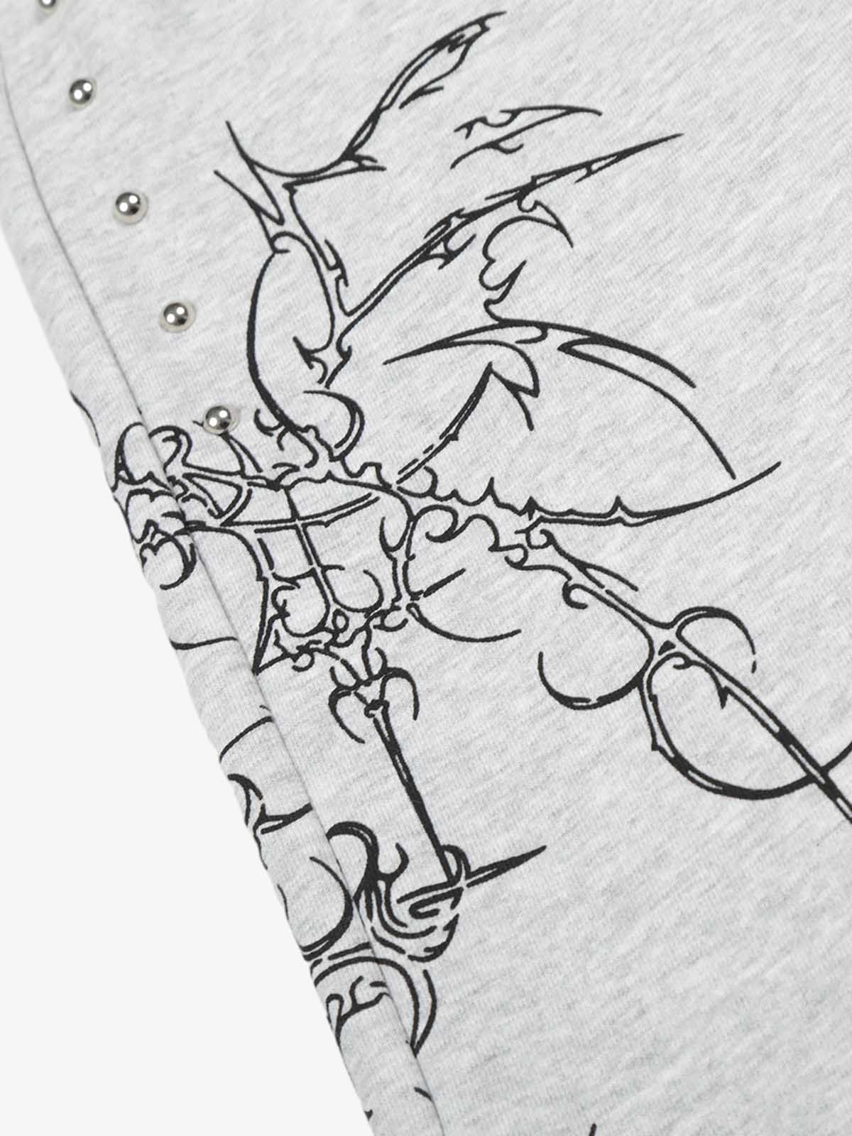 Floral Line Art Studded Wide Leg Drawstring Sweatpants