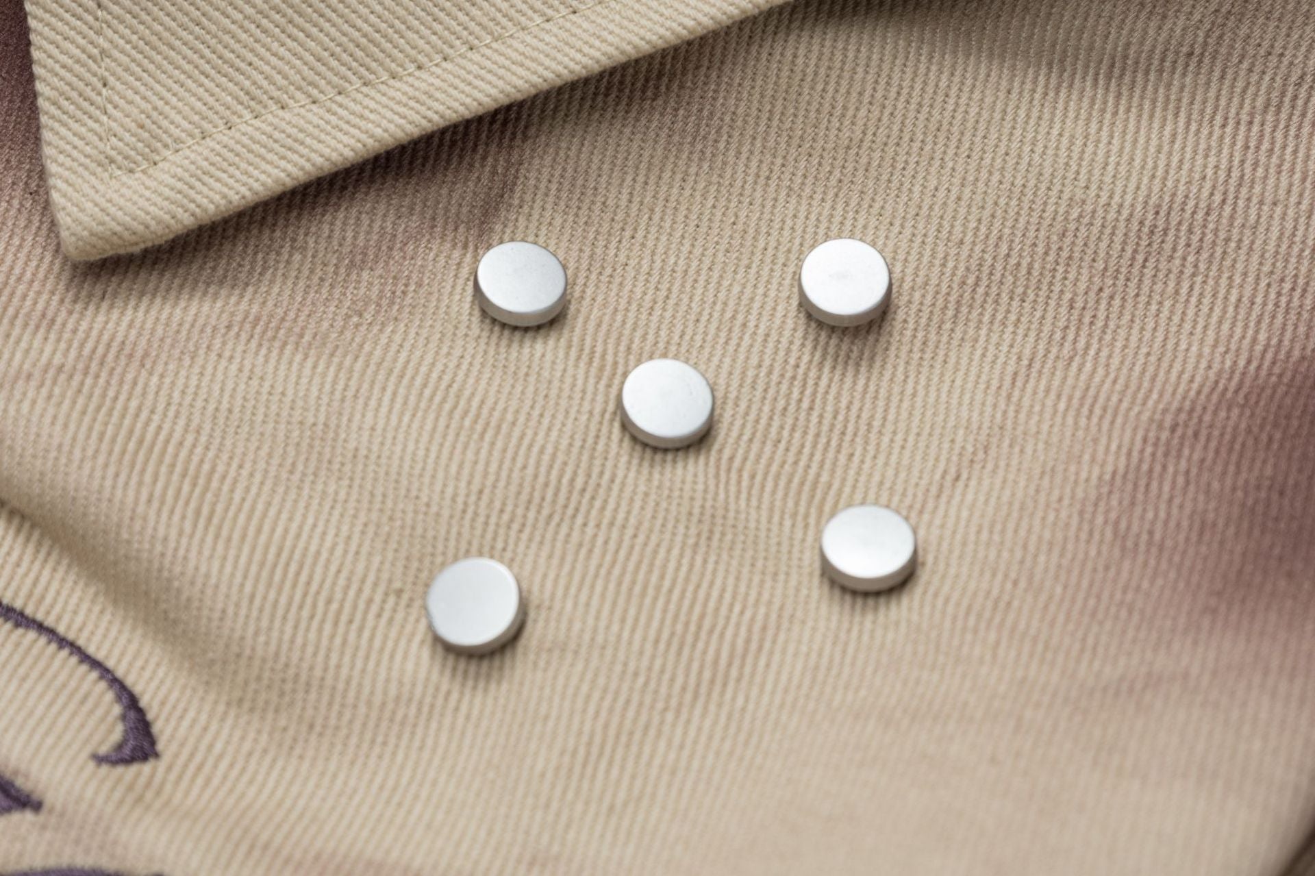 • Design Elements: Embroidered "Close to you" text, tie-dye pattern, decorative rivets on the collar