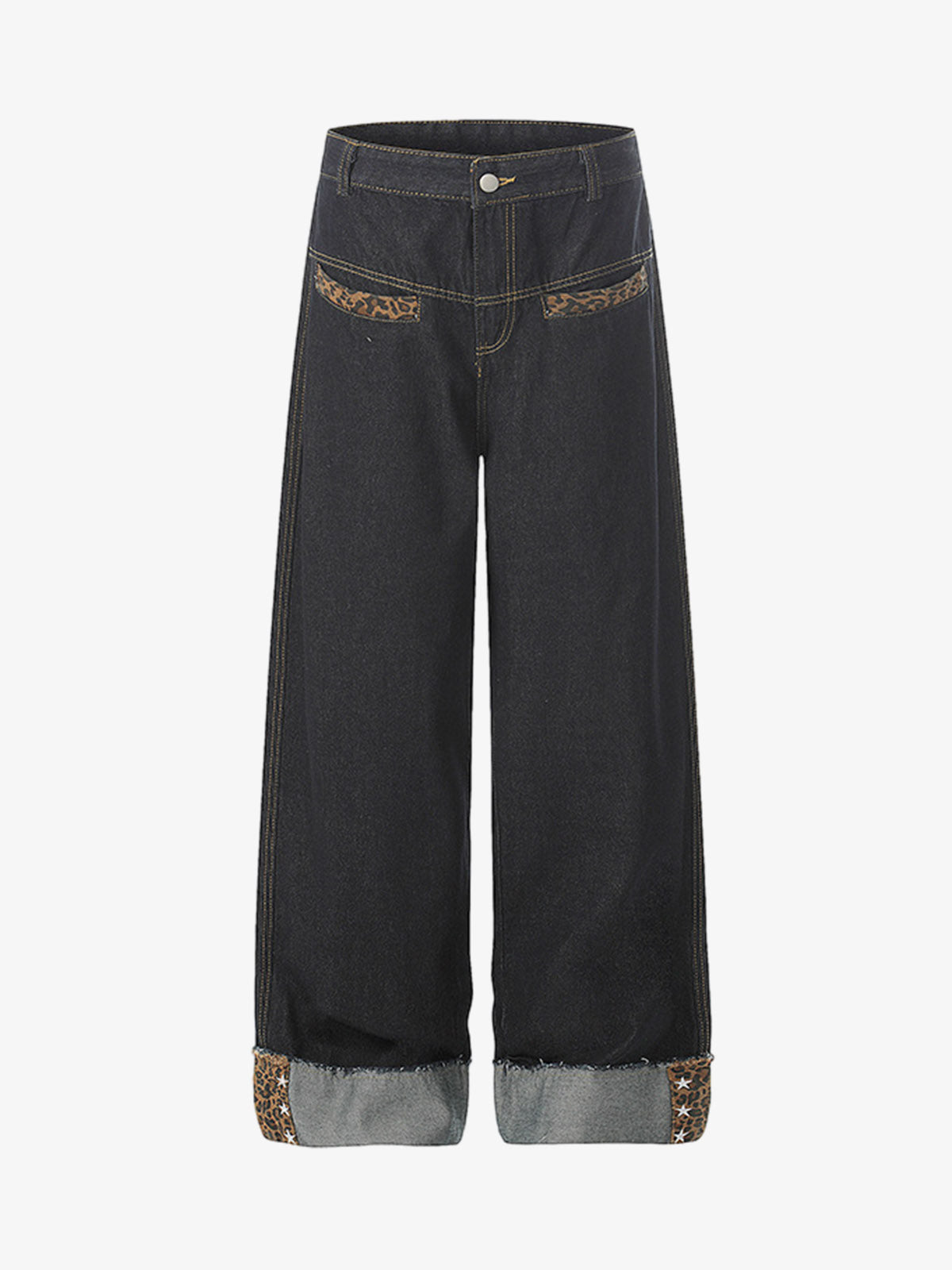 These wide-leg jeans feature a distinct washed finish that delivers a naturally faded, vintage-inspired look. The bold leopard print accents along the pockets and cuffed hems add a rebellious edge to a classic streetwear silhouette. Crafted from durable denim with a spacious, relaxed fit, these pants are designed for maximum comfort without compromising on style.