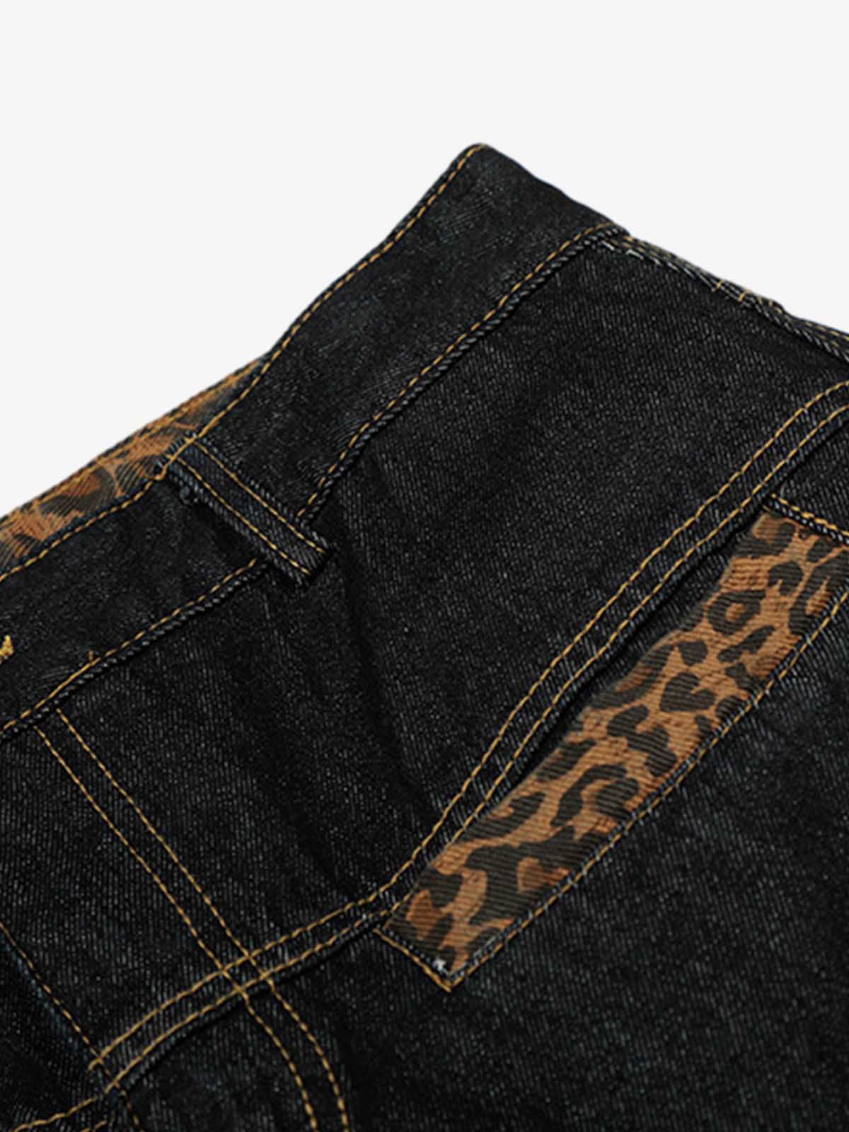 Leopard Print Trim Washed Jeans