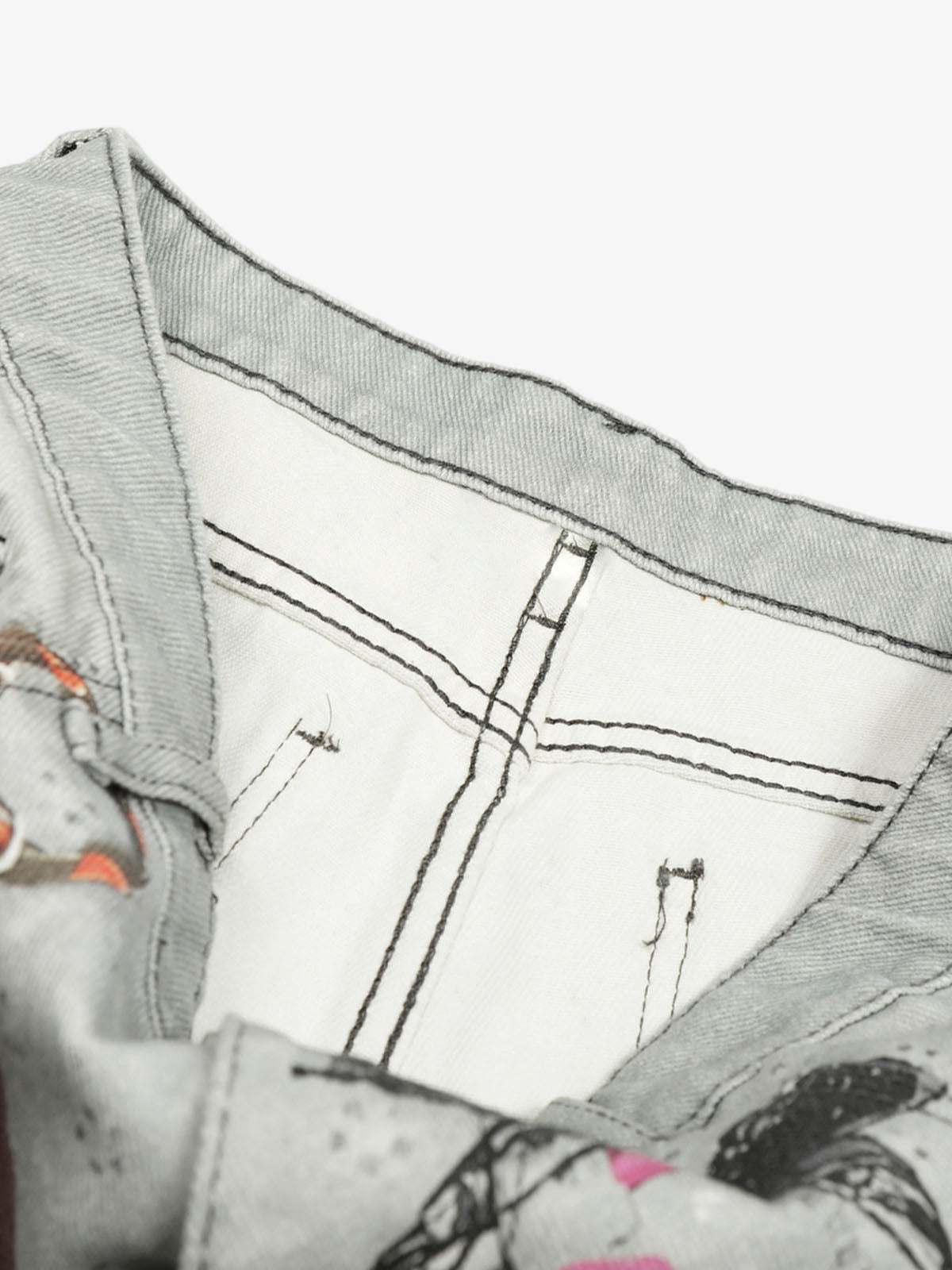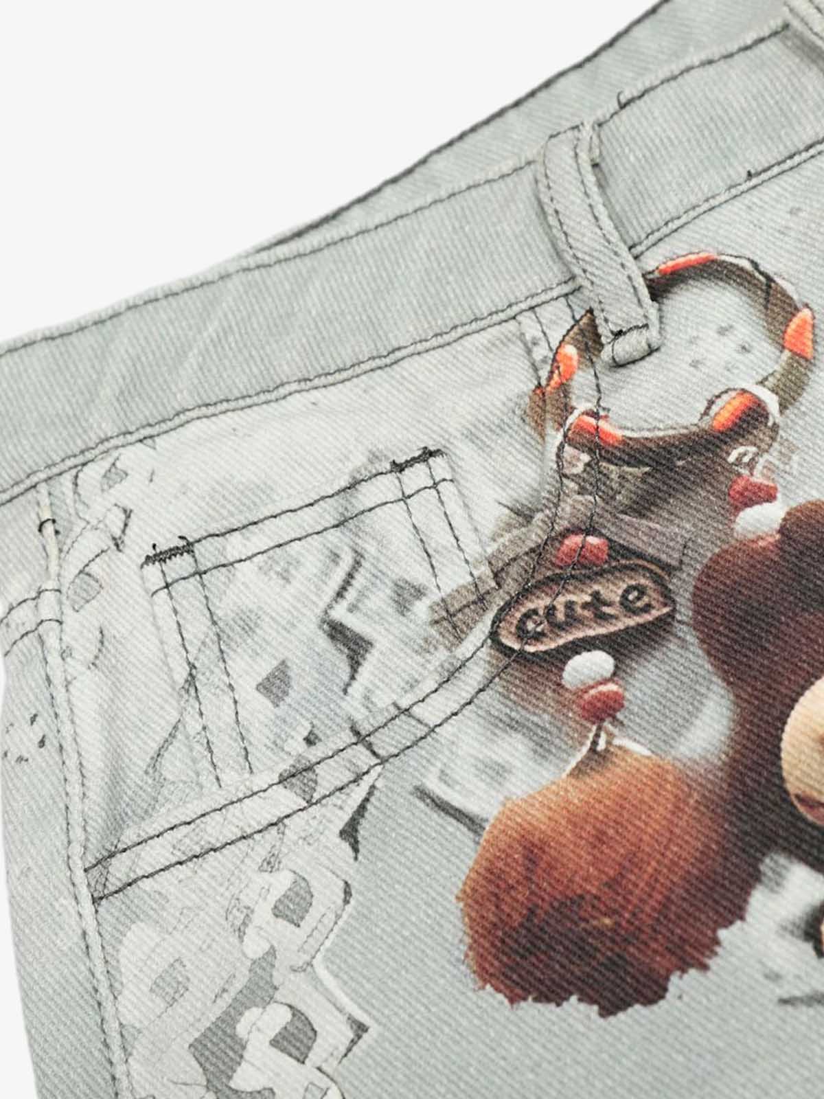 Retro 3D Fun Doll Print Washed Baggy Jeans