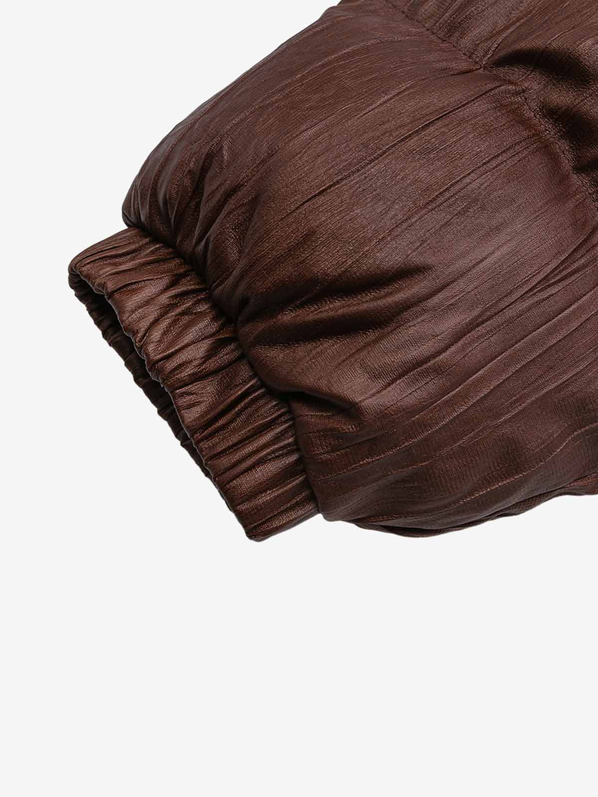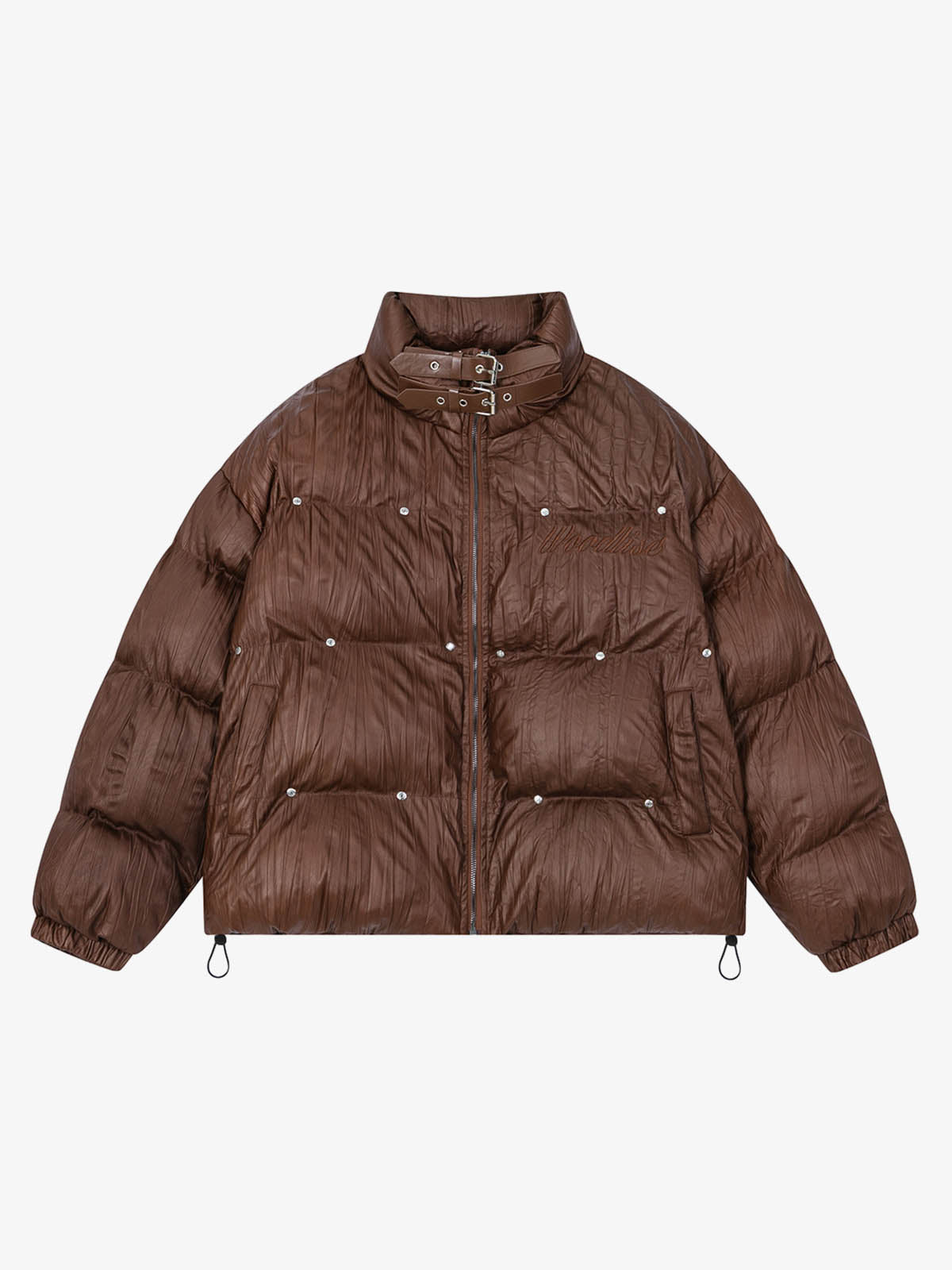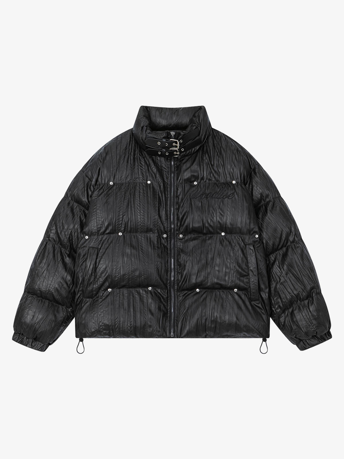 Retro Buckled High-Neck Crinkle Puffer Jacket