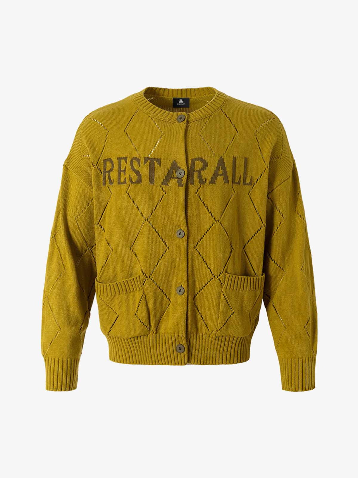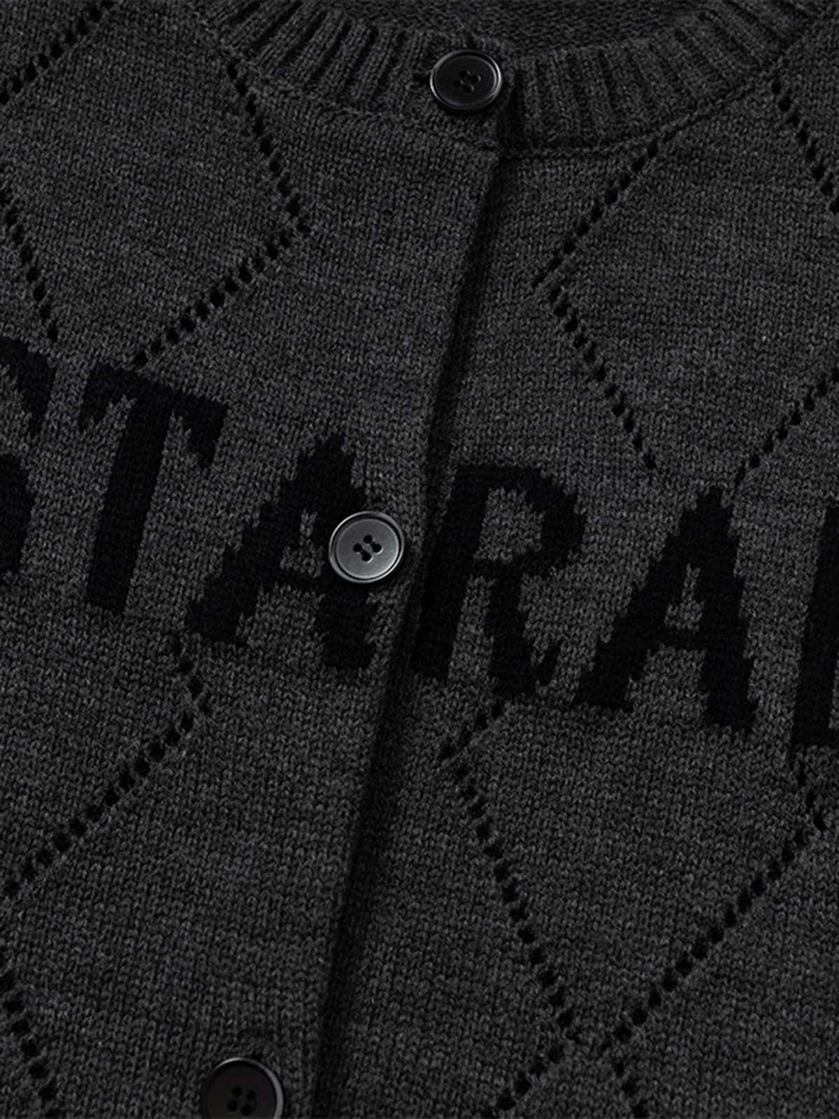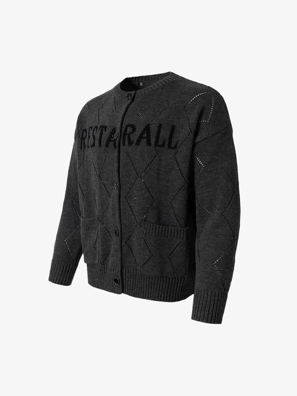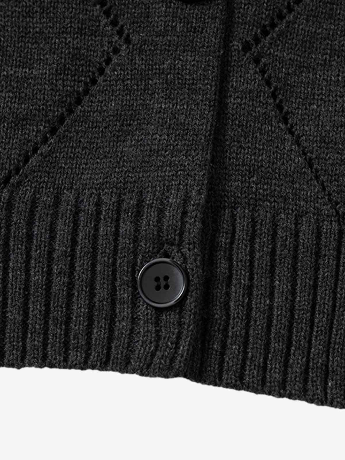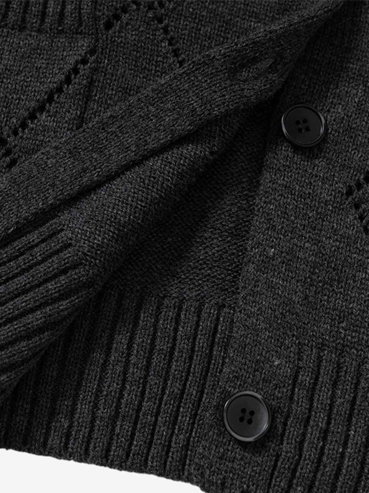 Retro Diamond Check Hollow Knit Cardigan Sweater