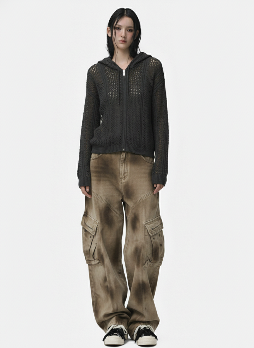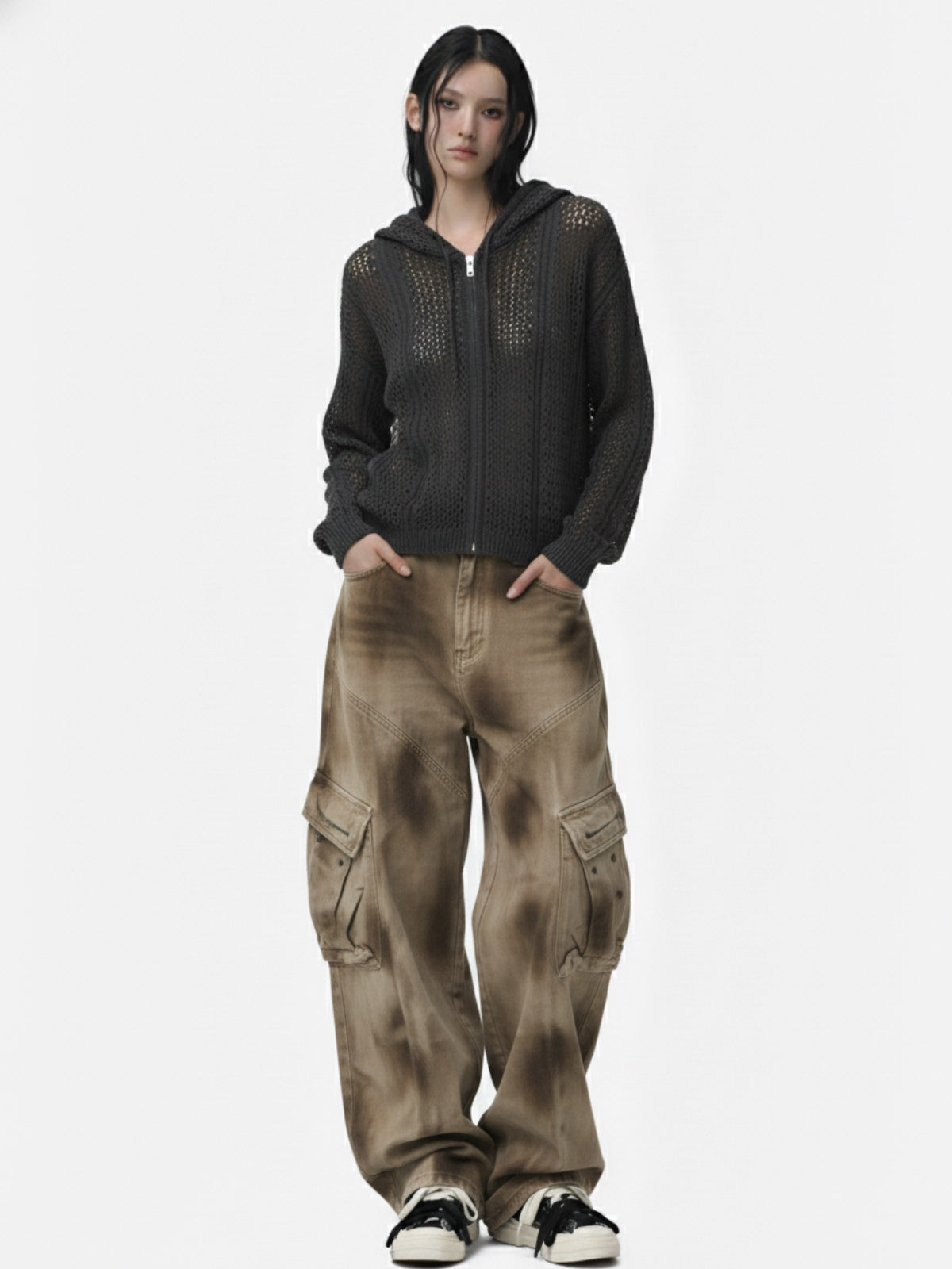• Design Elements: Crochet Pattern, Zipper Closure, Hooded Design