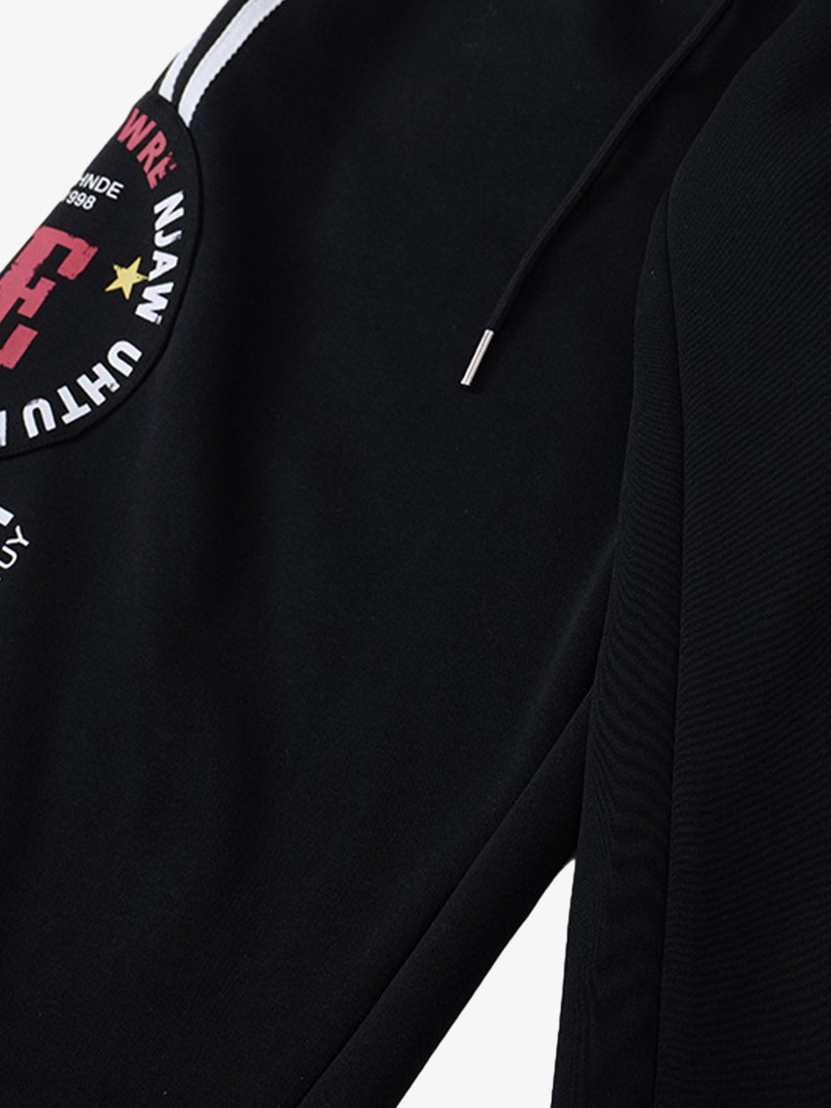 • Design Elements: Side panel graphics, elastic waistband with drawstring, relaxed fit