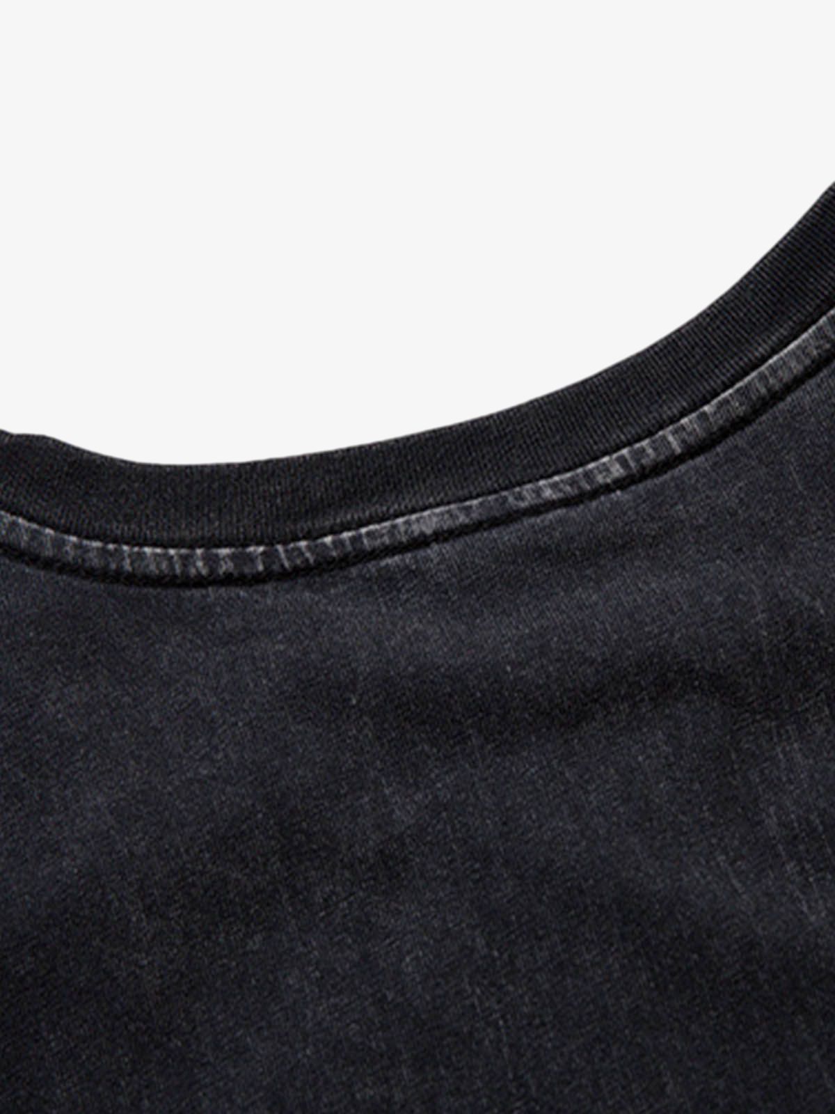 Retro Letter Print Waffle Simplicity Long-Sleeved T-Shirt