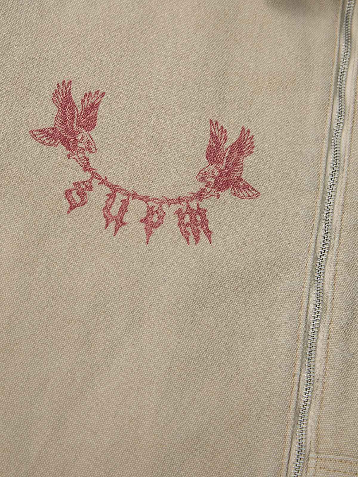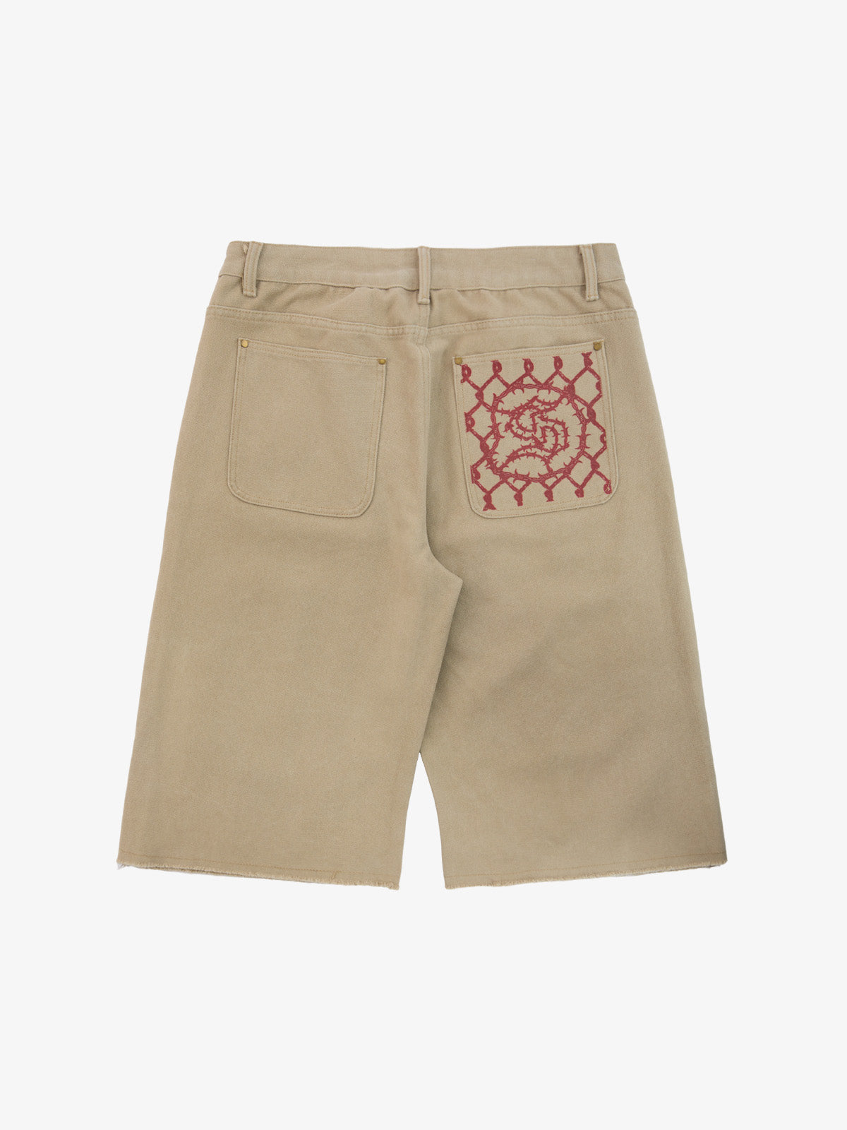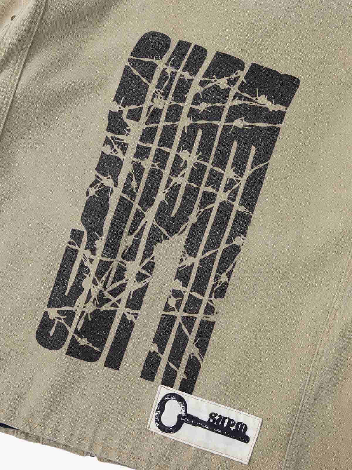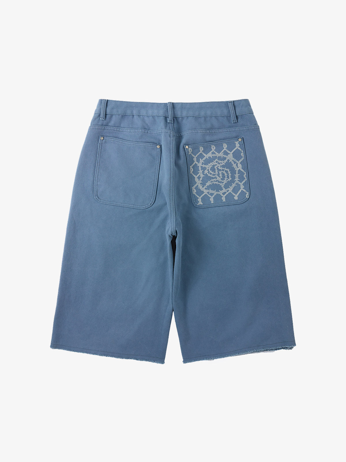 Constructed from a cotton-blend base, this denim suit merges multiple fabric textures with heavy visual detailing. The jacket features contrast corduroy paneling paired with washed denim, delivering a structured yet street-ready silhouette. Finished with multi-element appliqué patches, graphic prints, and mixed placement artwork across both the jacket and shorts, the set leans into a bold, statement-driven aesthetic while maintaining everyday wearability.