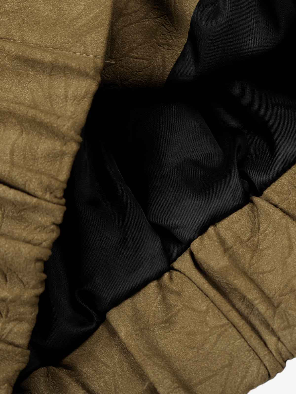 Textured Faux Leather Stand Collar Metal Buckle Jacket