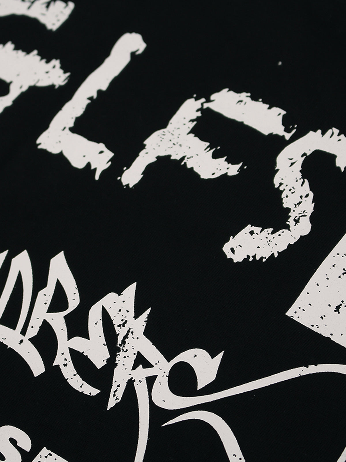 • Design Elements: Bold lip graphic print, distressed hem details, playful text overlay
