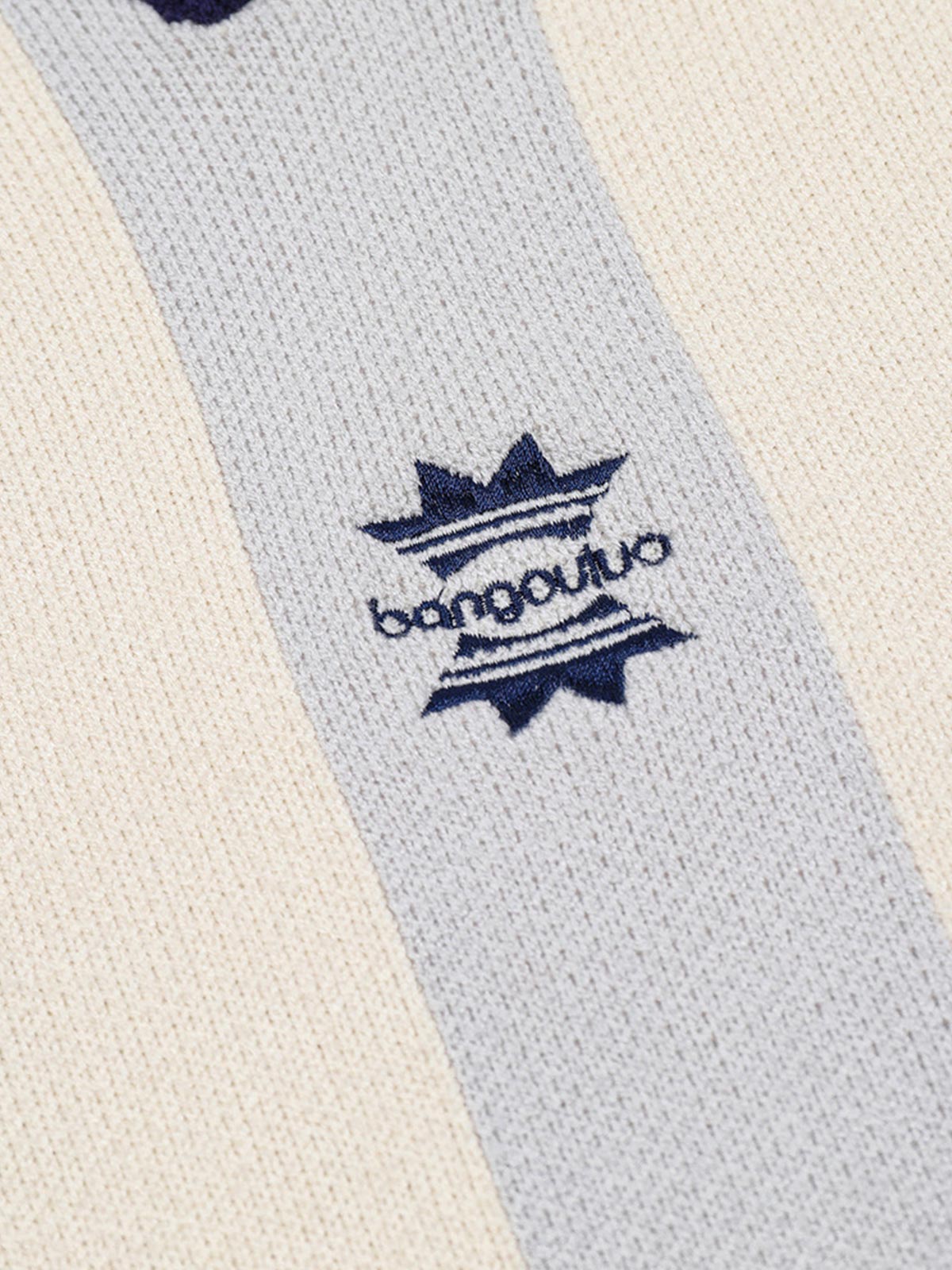 • Design Elements: Vertical stripes, embroidered logo, contrast collar