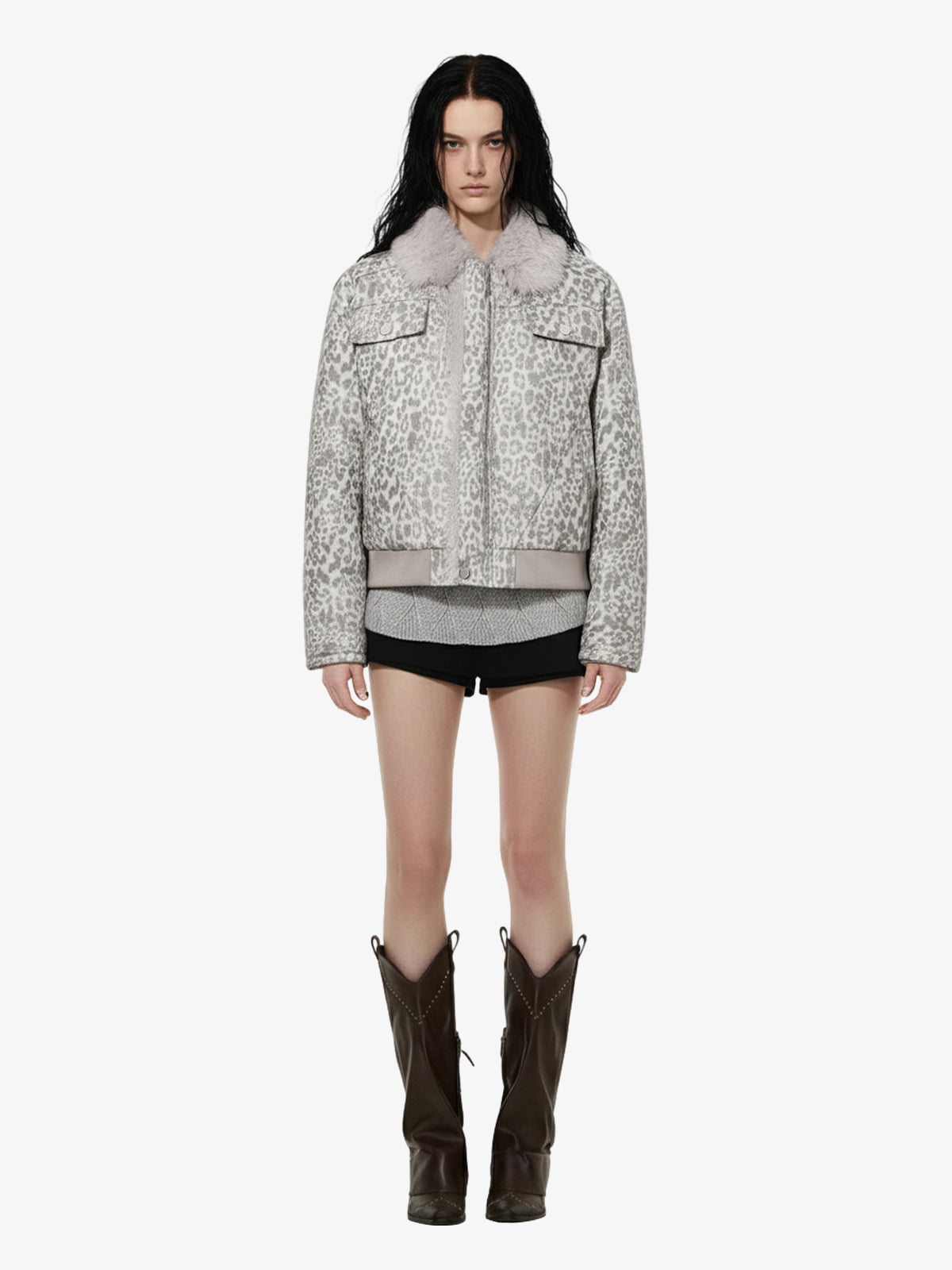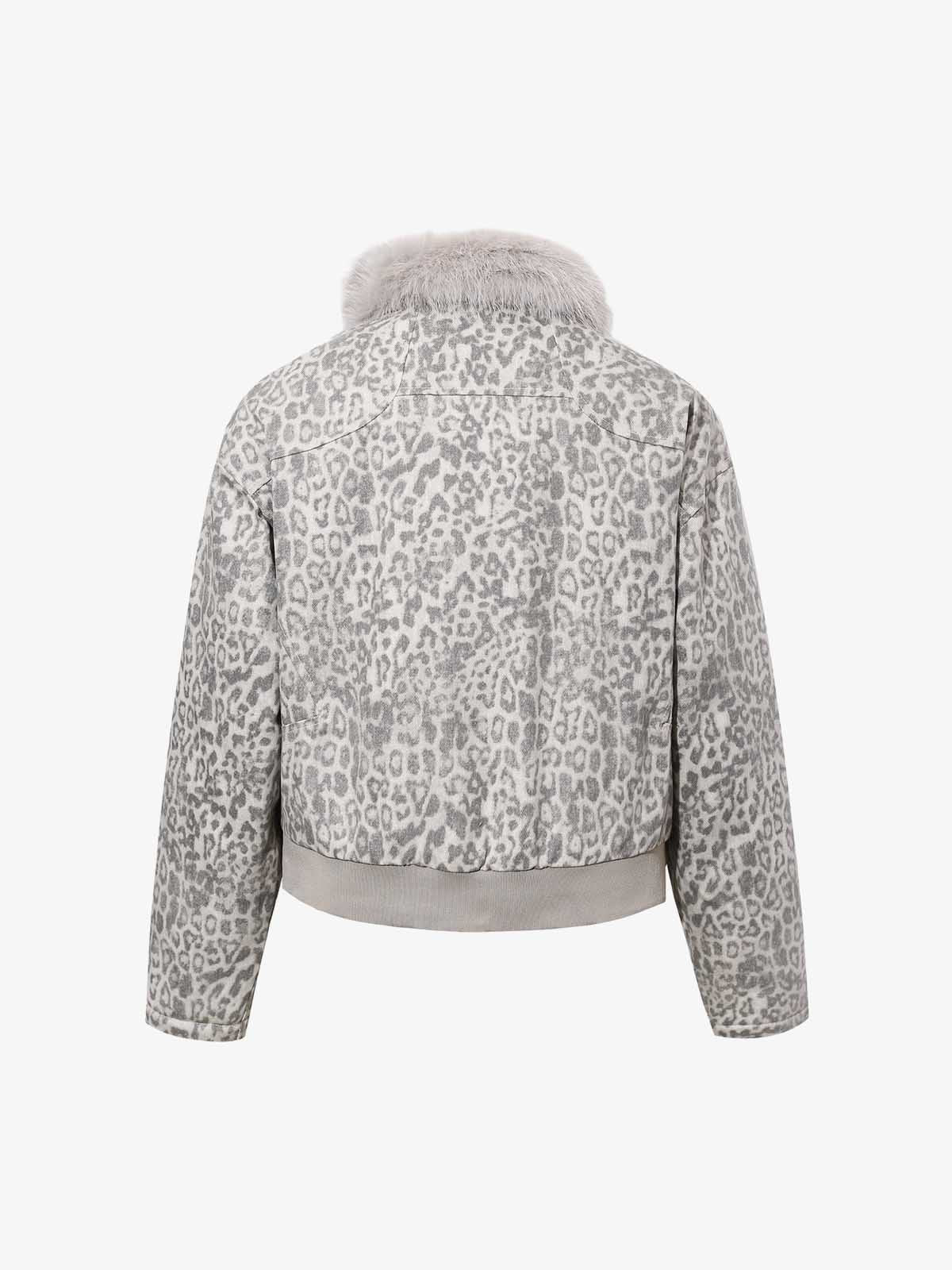 • Design Elements: Leopard print pattern, faux fur collar, front zipper closure