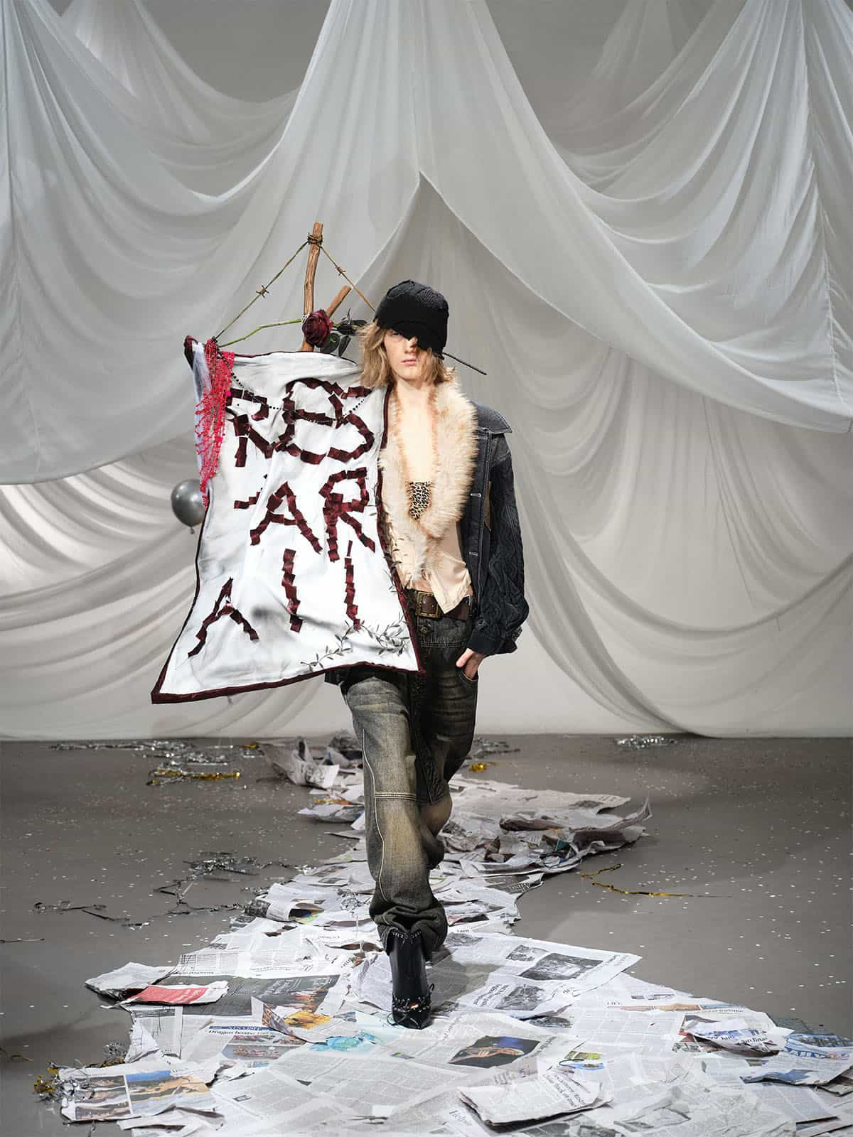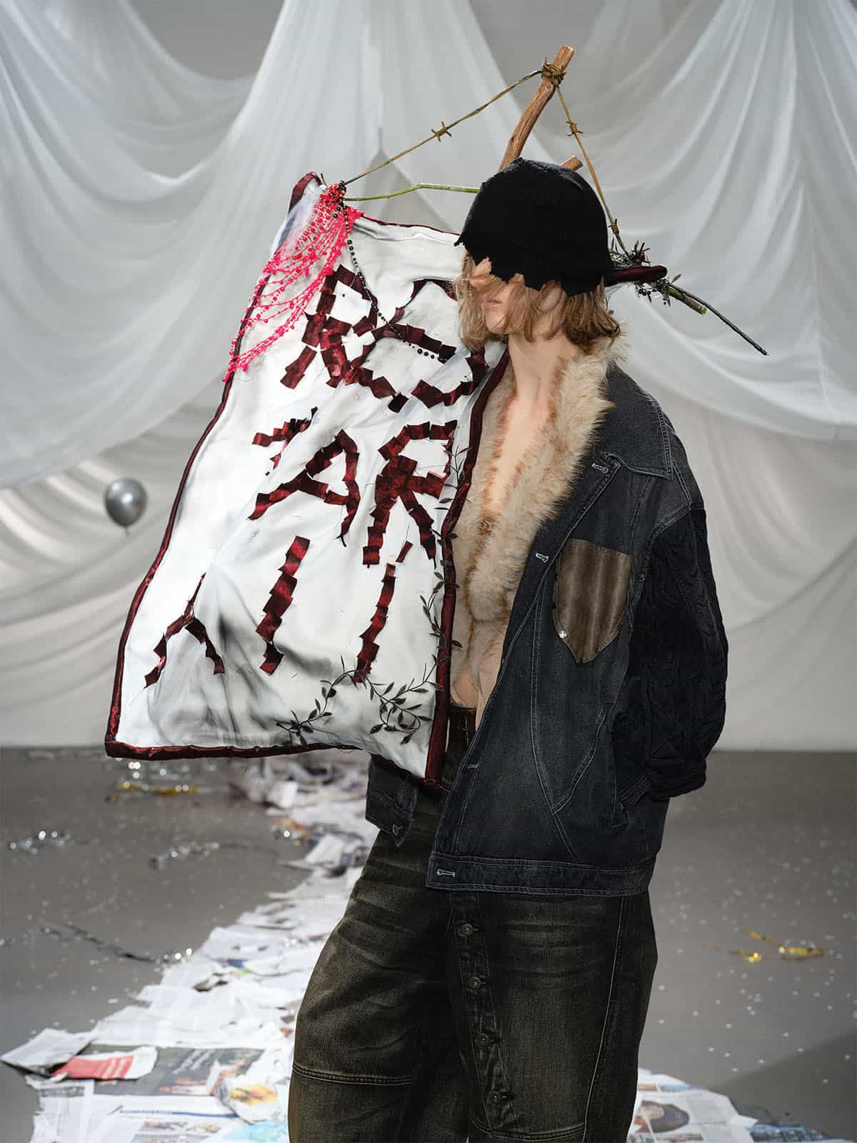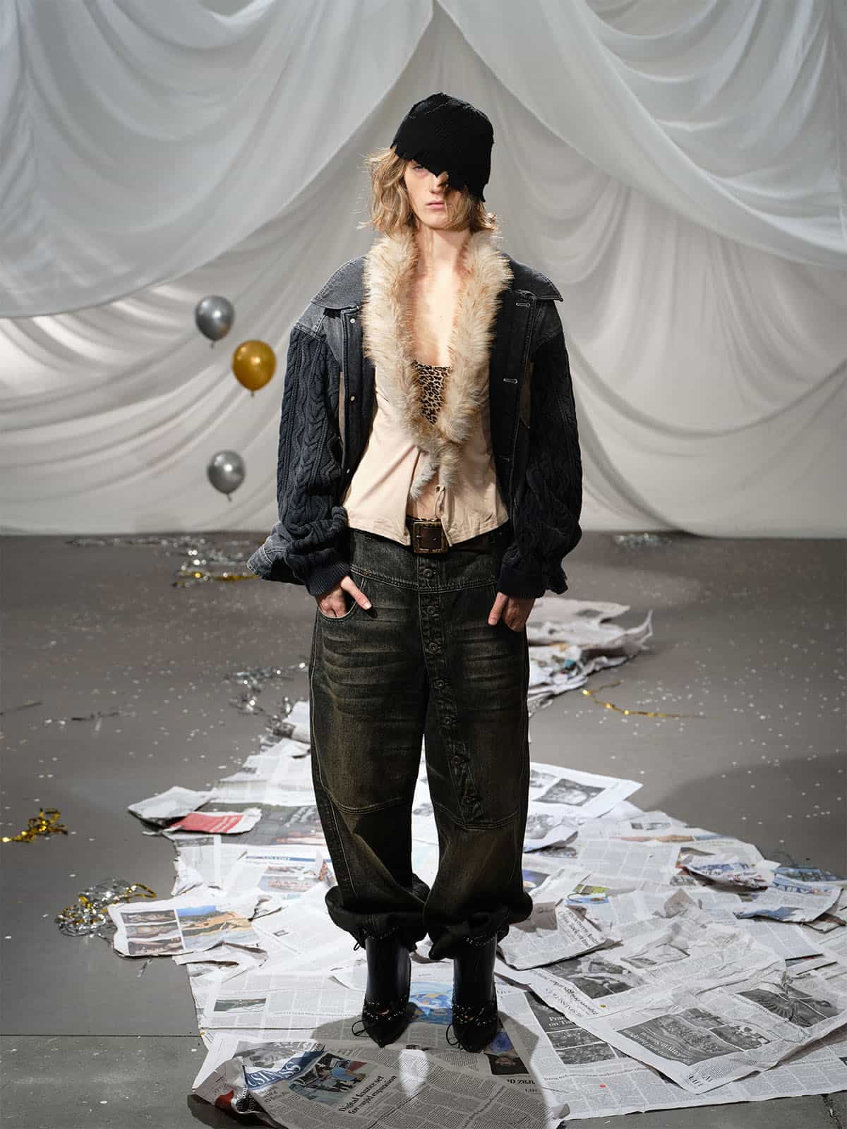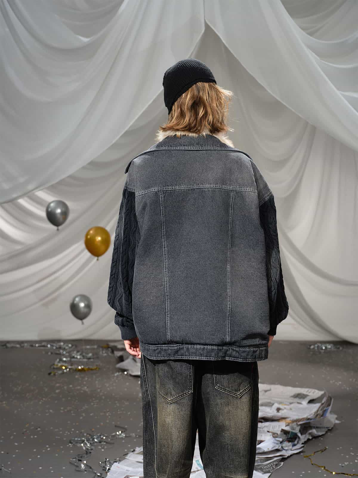 • Unique combination of denim and cable knit sleeves for a trendy appearance