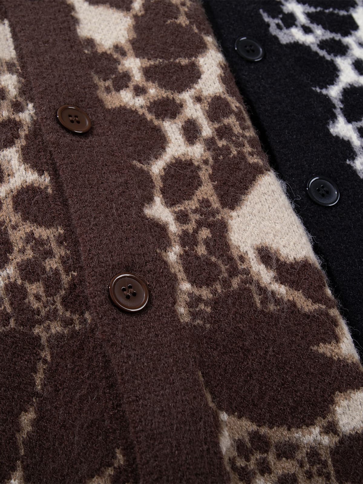 Vintage Skull Leopard Jacquard Knitted Cardigan
