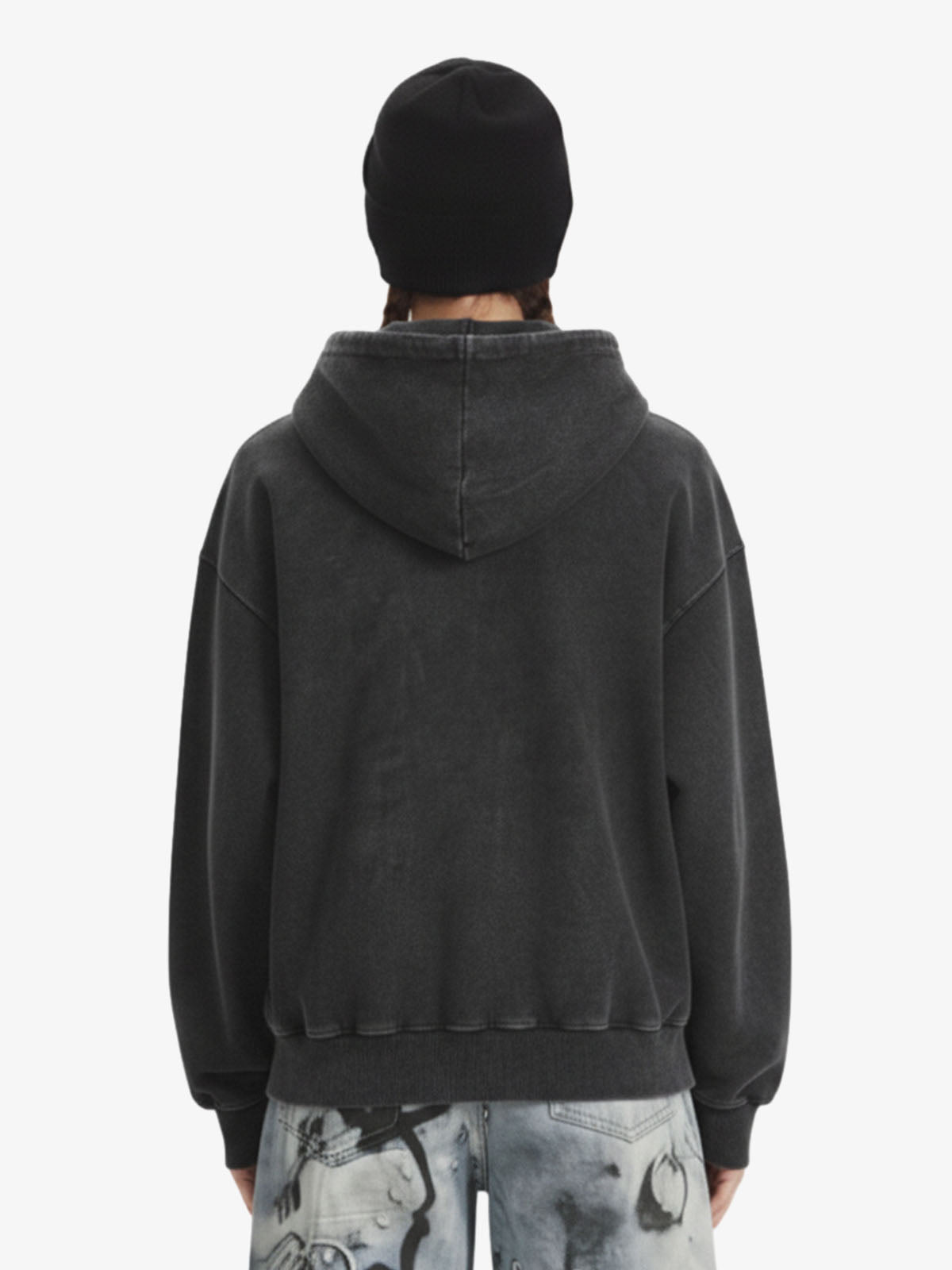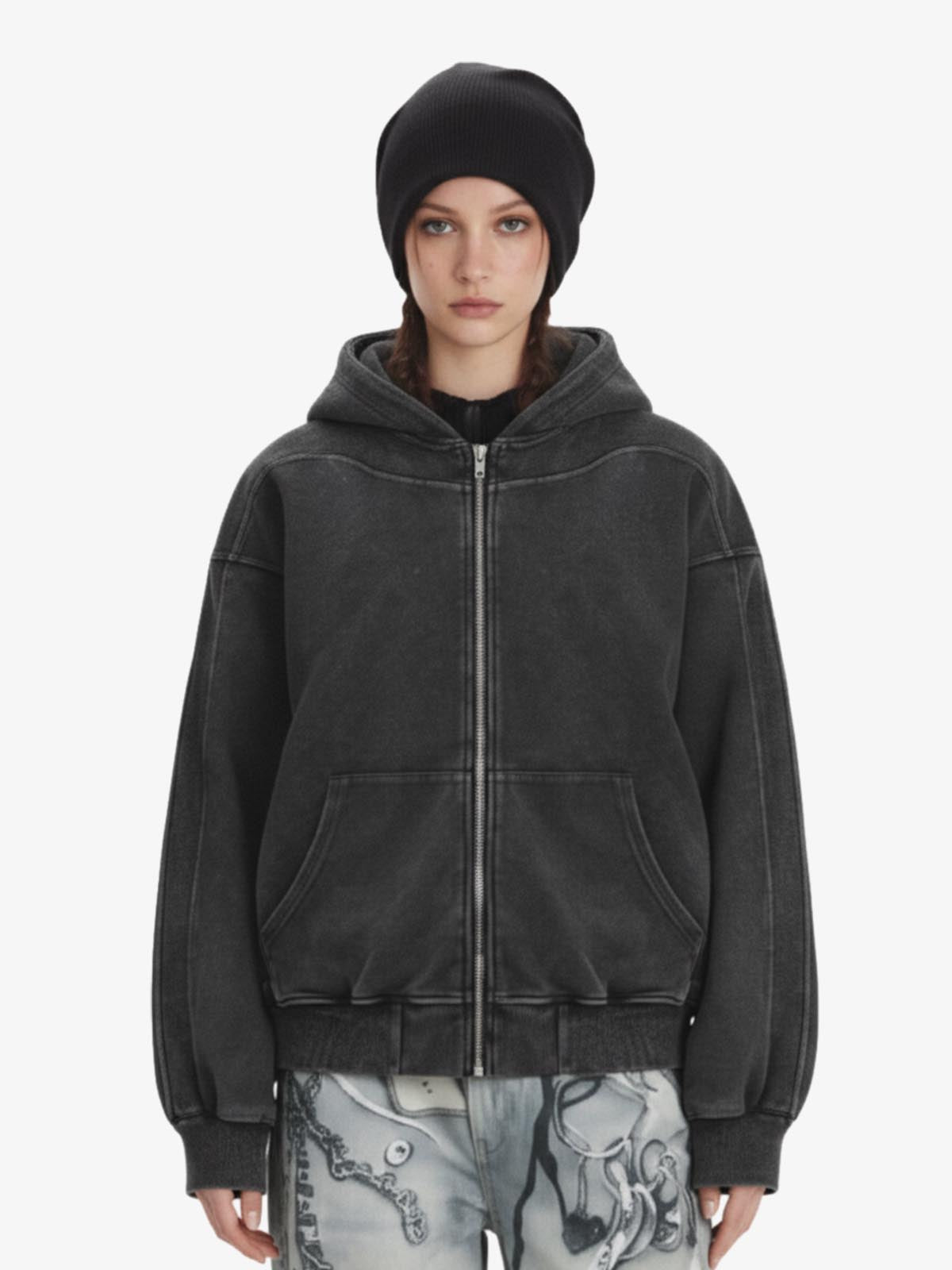 Vintage Washed Panel Construction Zip-Up Hoodie