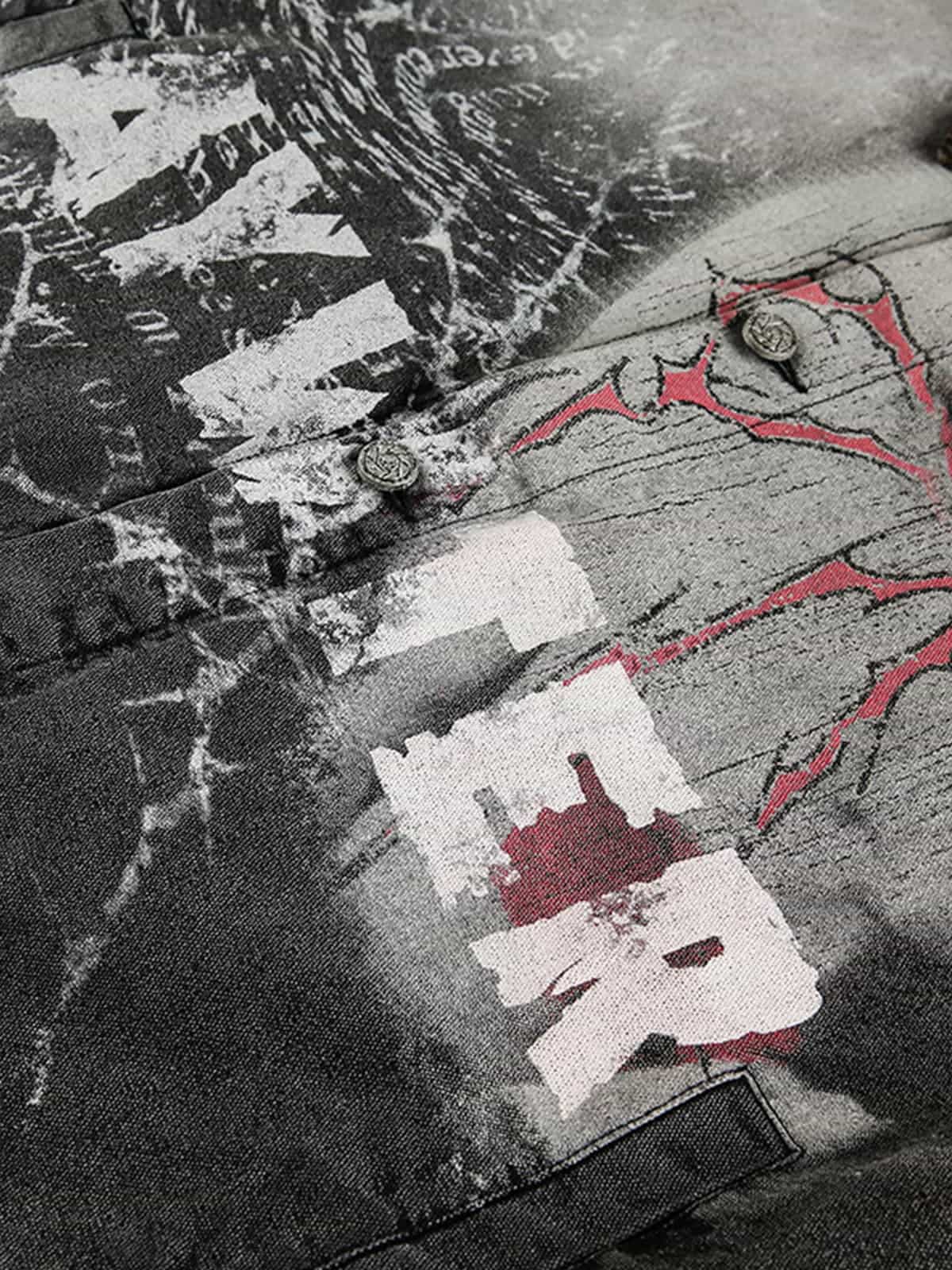 Washed And Distressed Dark Graffiti Patchwork Jacket