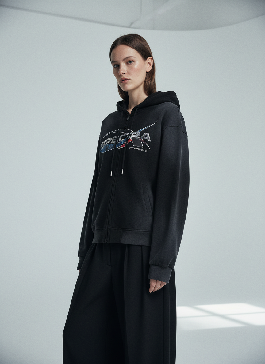 • Design Elements: Bold graphic print with vibrant colors, half-zip closure