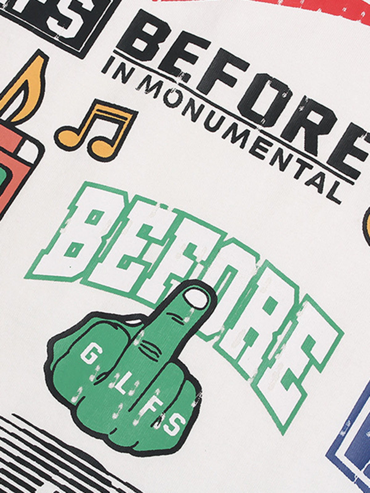 Jersey Deconstructed Contrast Color Stitching Print T-shirt - 2407