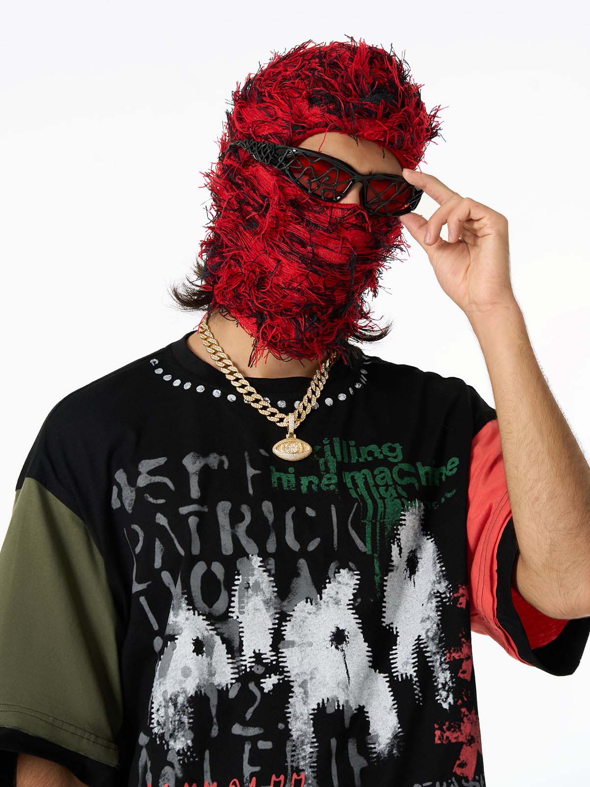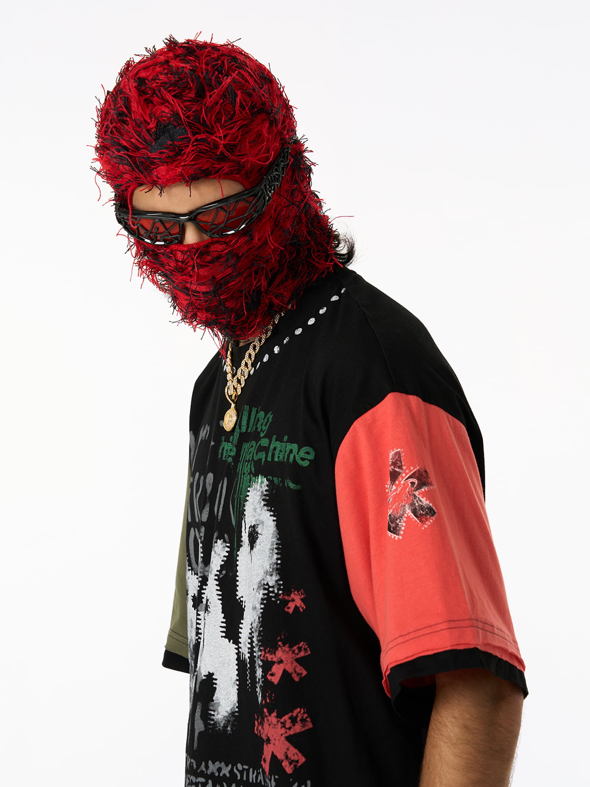Jersey Deconstructed Contrast Color Stitching Print T-shirt - 2407