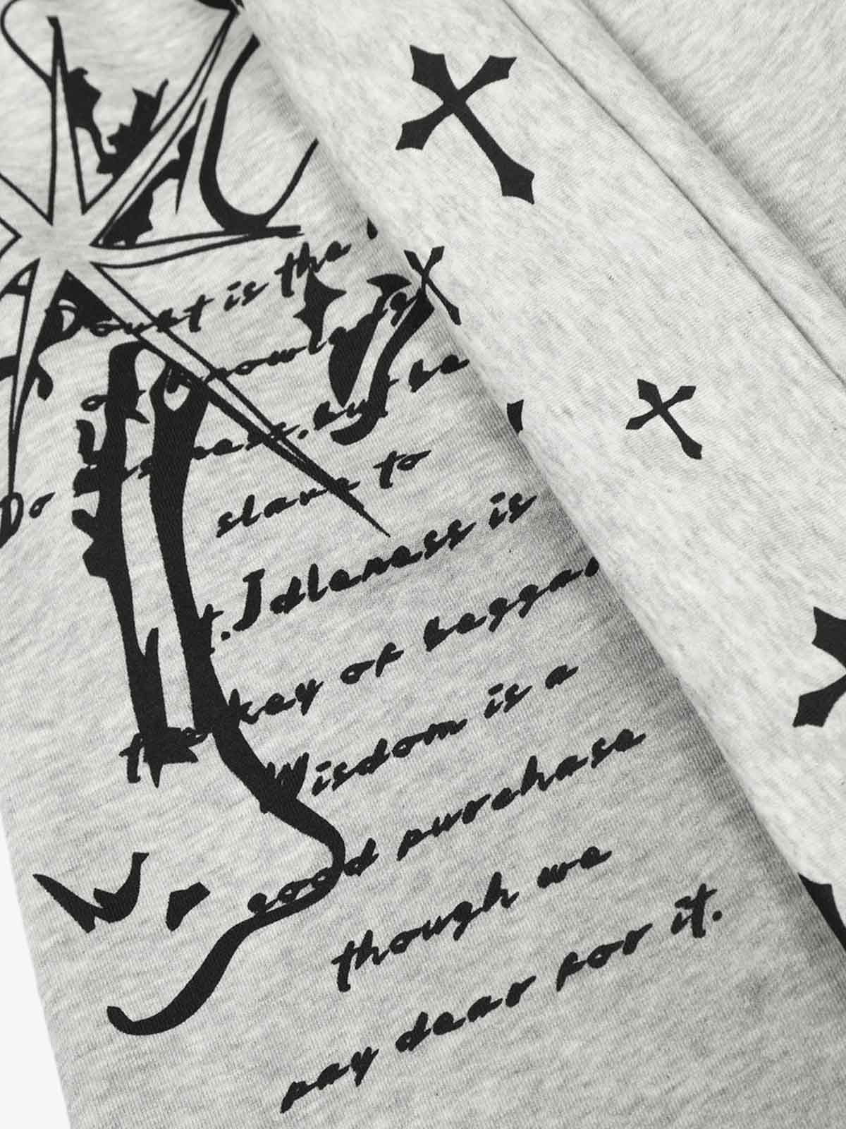 Cross Print Long Tie Detail Baggy Sweatpants