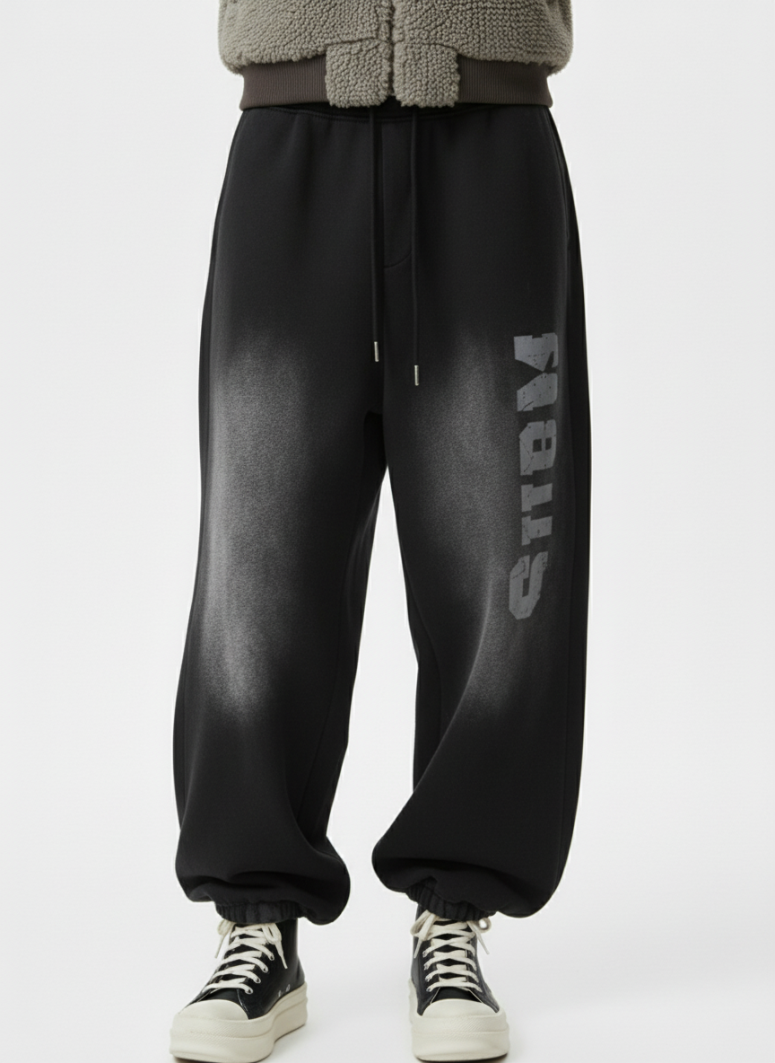 • Design Elements: Gradient print on the side, vertical text design, drawstring waistband