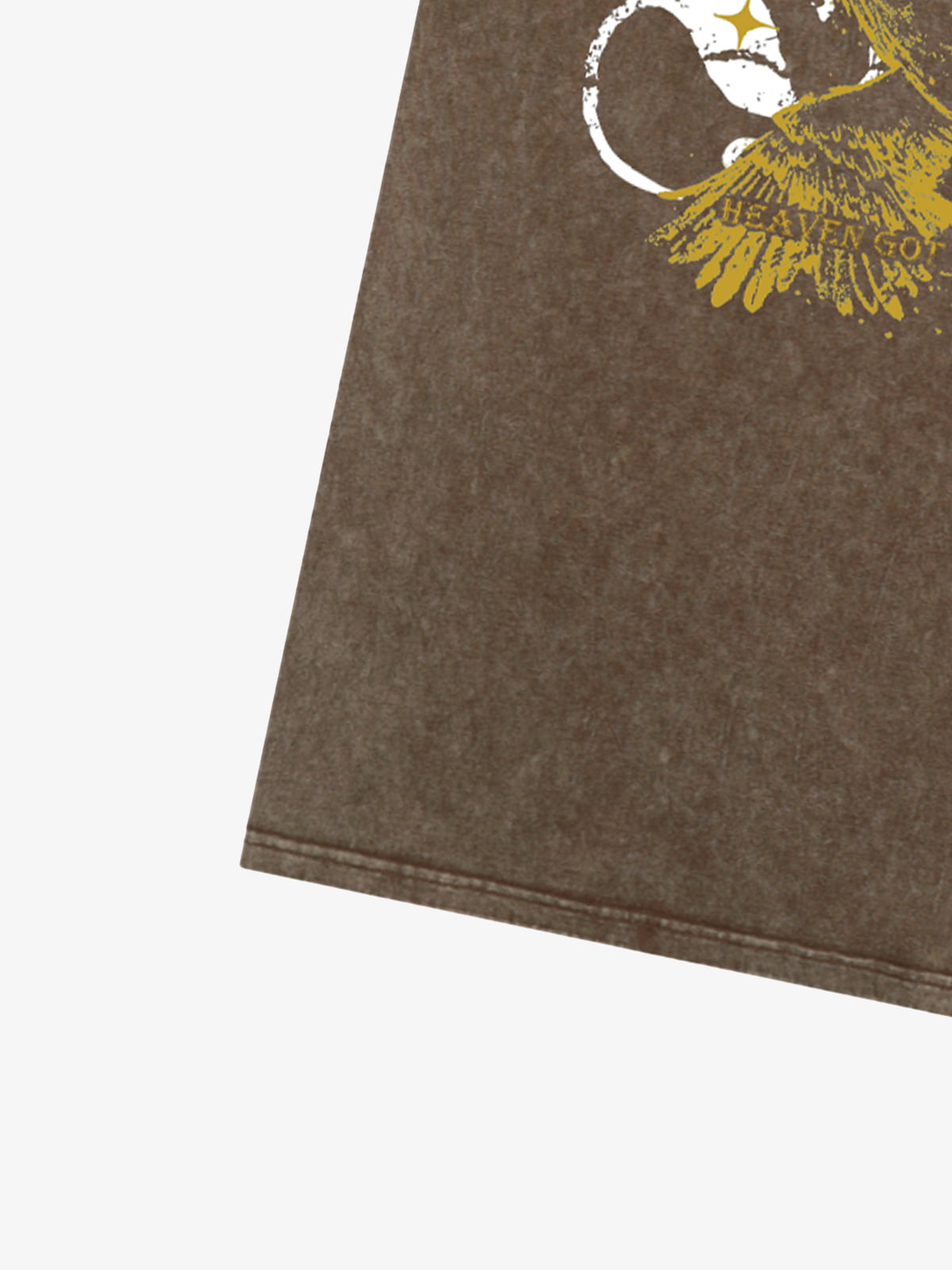 • Design Elements: Bold eagle graphic print, distressed look, white and yellow accents