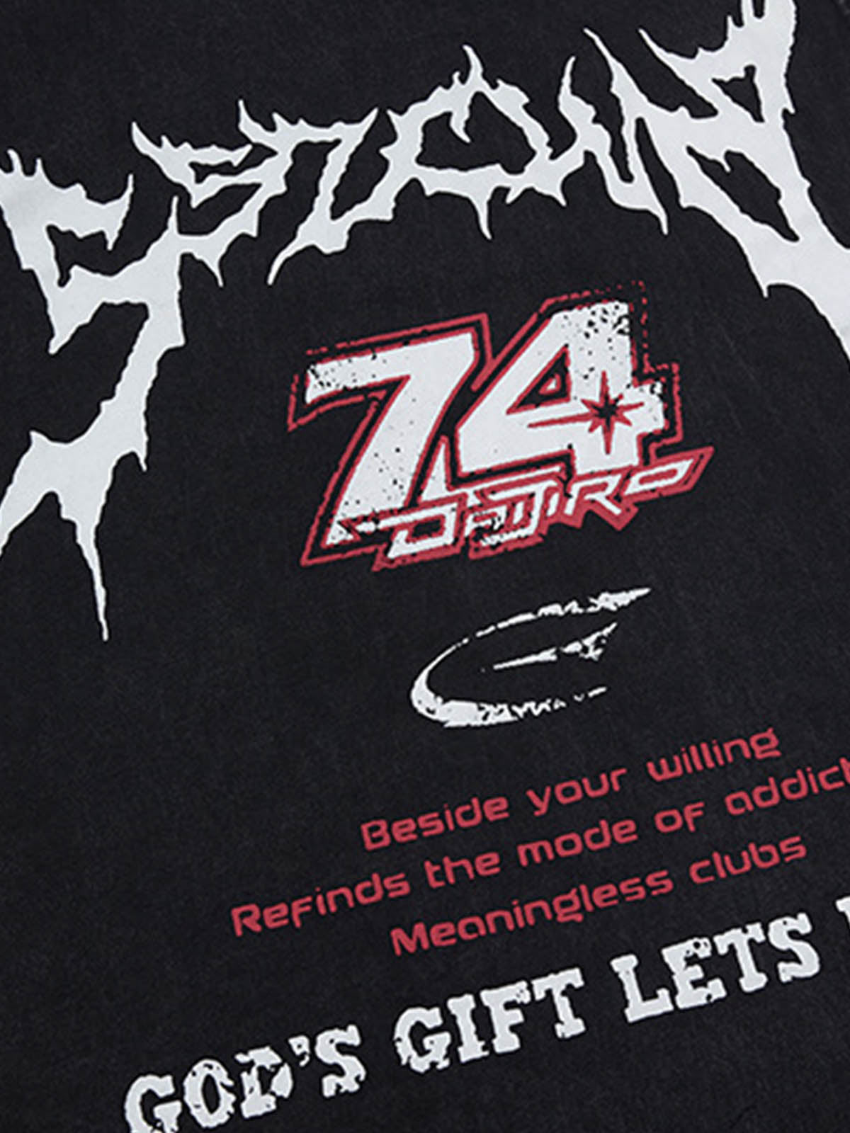 Retro Washed Letter Print Vest