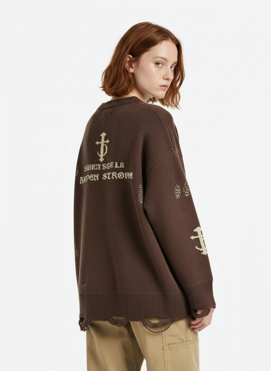 High Street Letter Jacquard Ripped Tassel Sweater