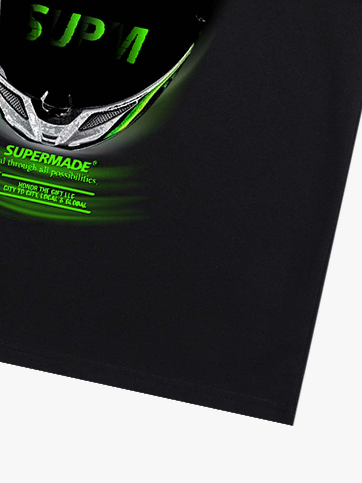 • Detail Features: Central Snake Coiled Around Sword Graphic, Splatter Print Accents, Minimalist Text Slogan, Brand Logo Patch on Chest