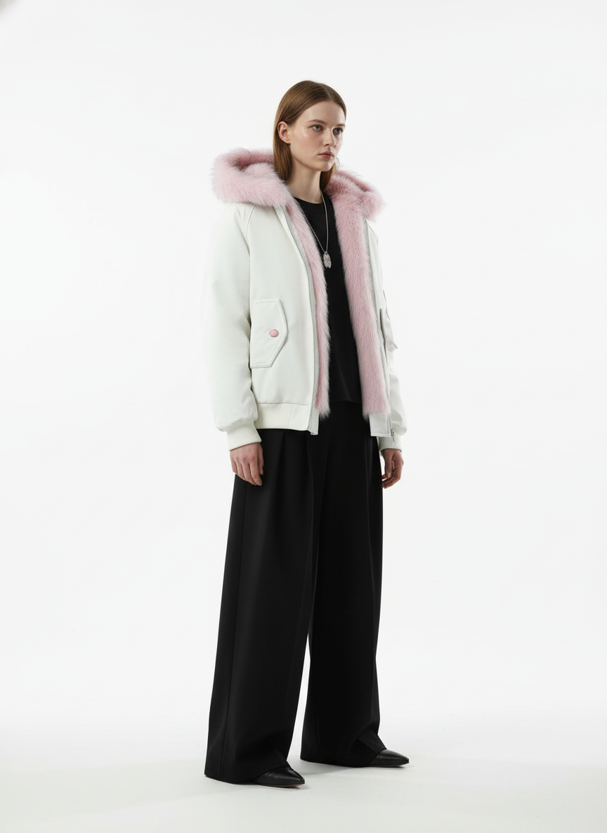 Retro Contrast Fur Collar Quilted Cotton Bomber Jacket