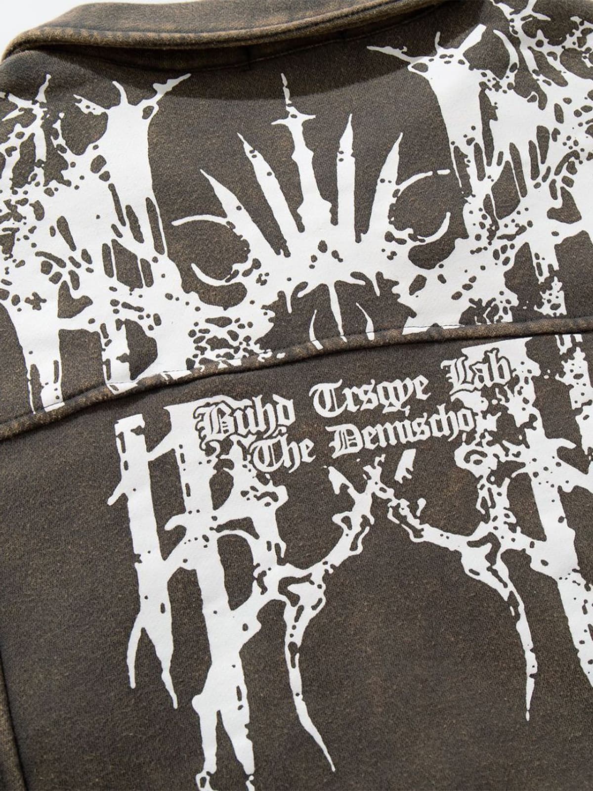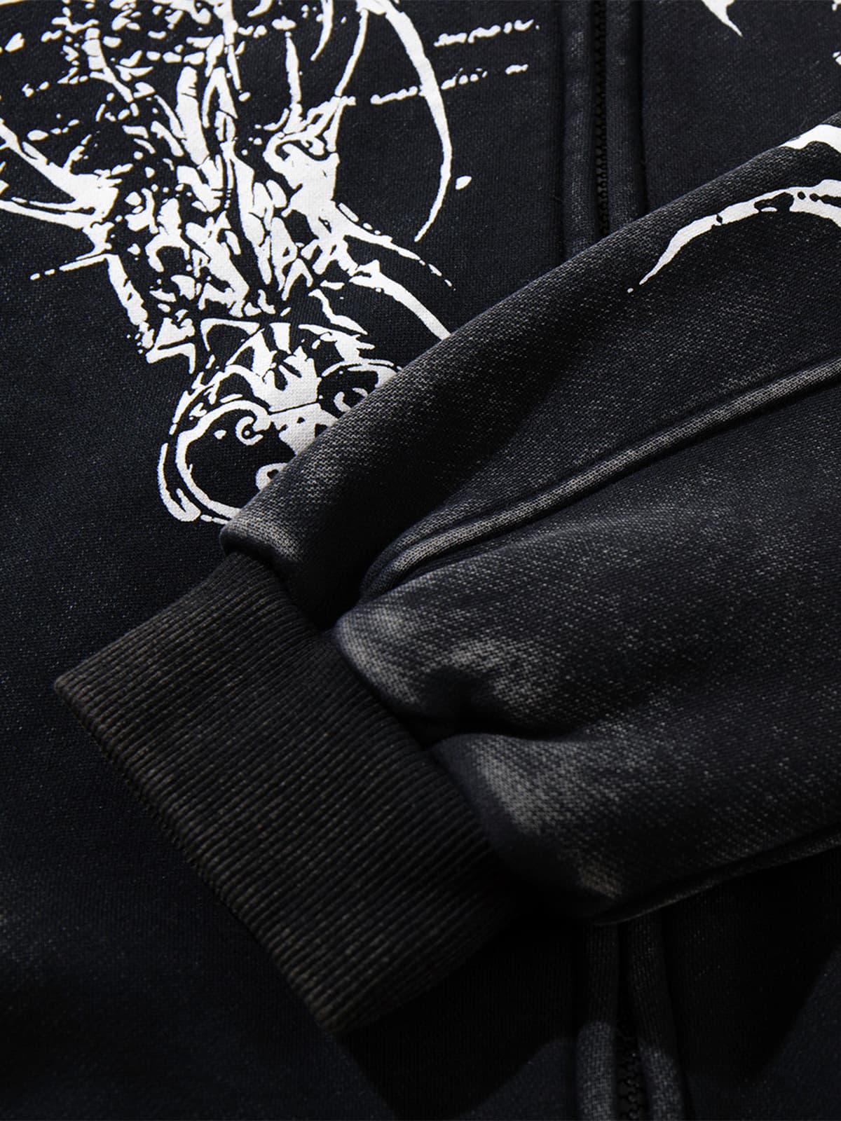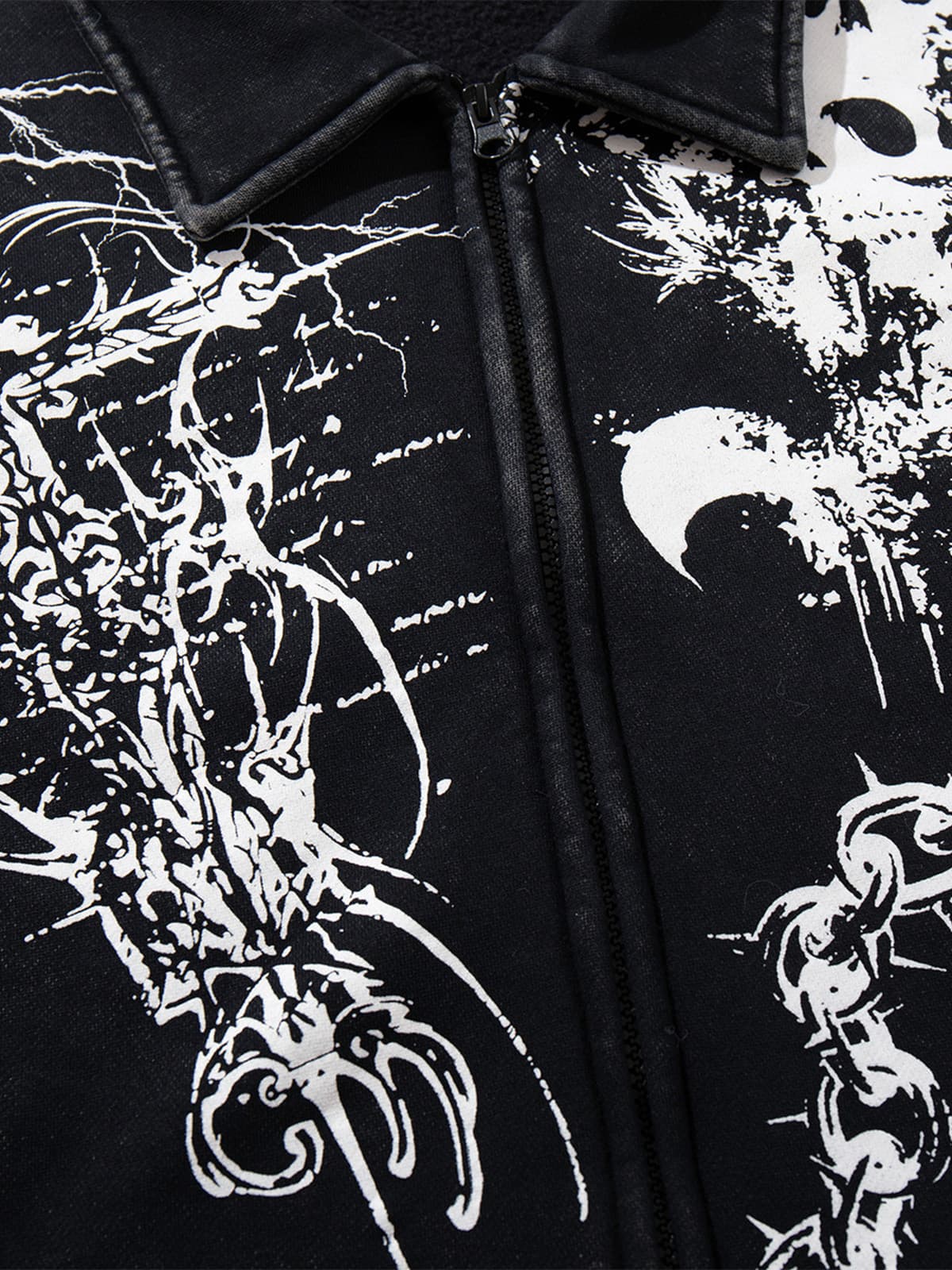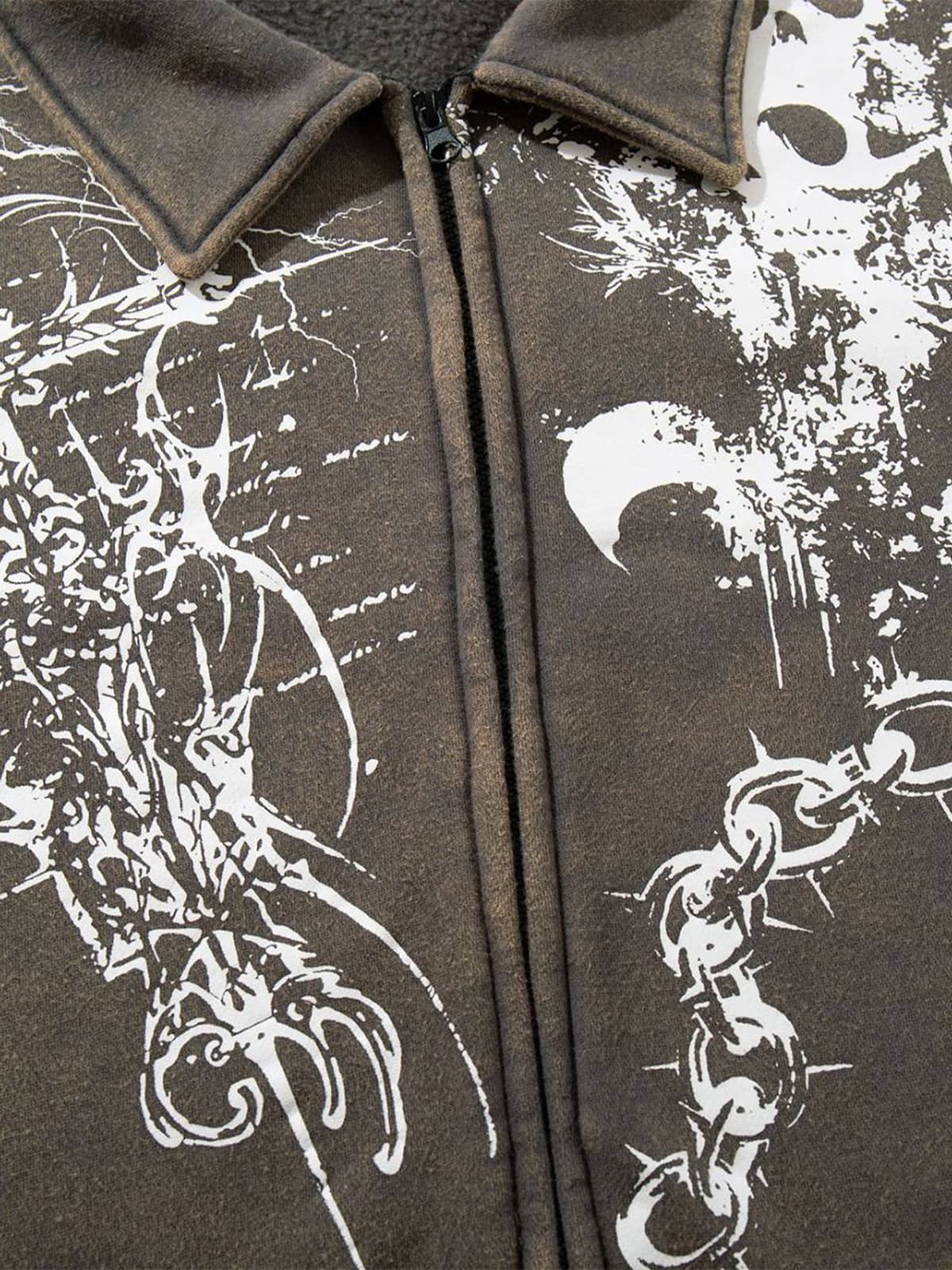Retro Dark Skull Cross Print Lapel Zipper Jacket