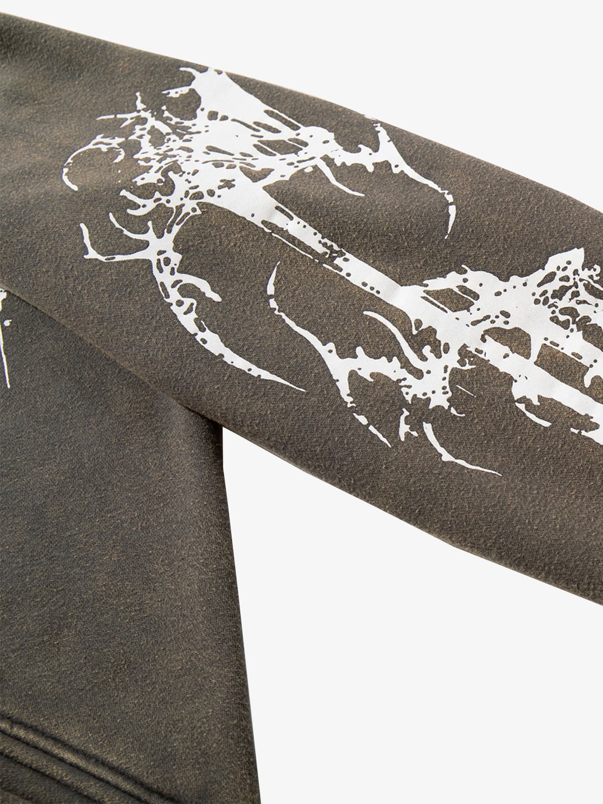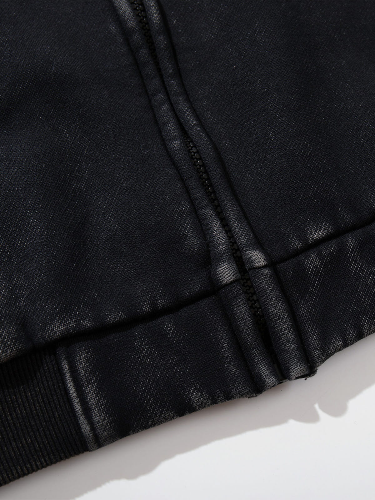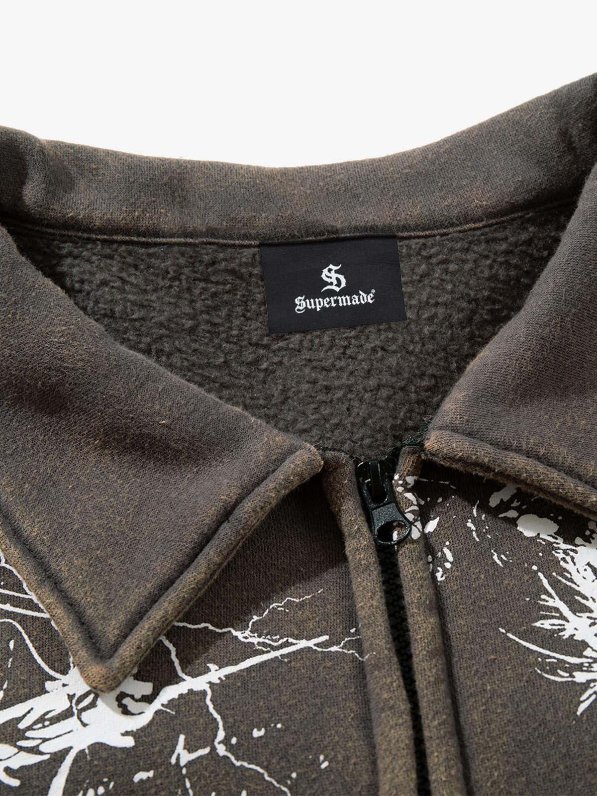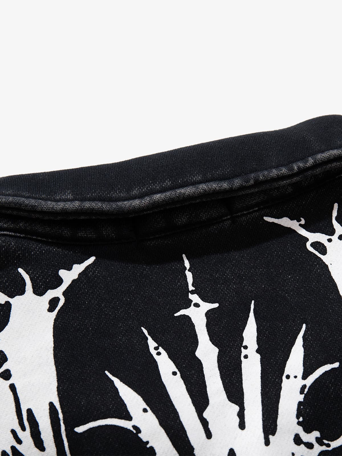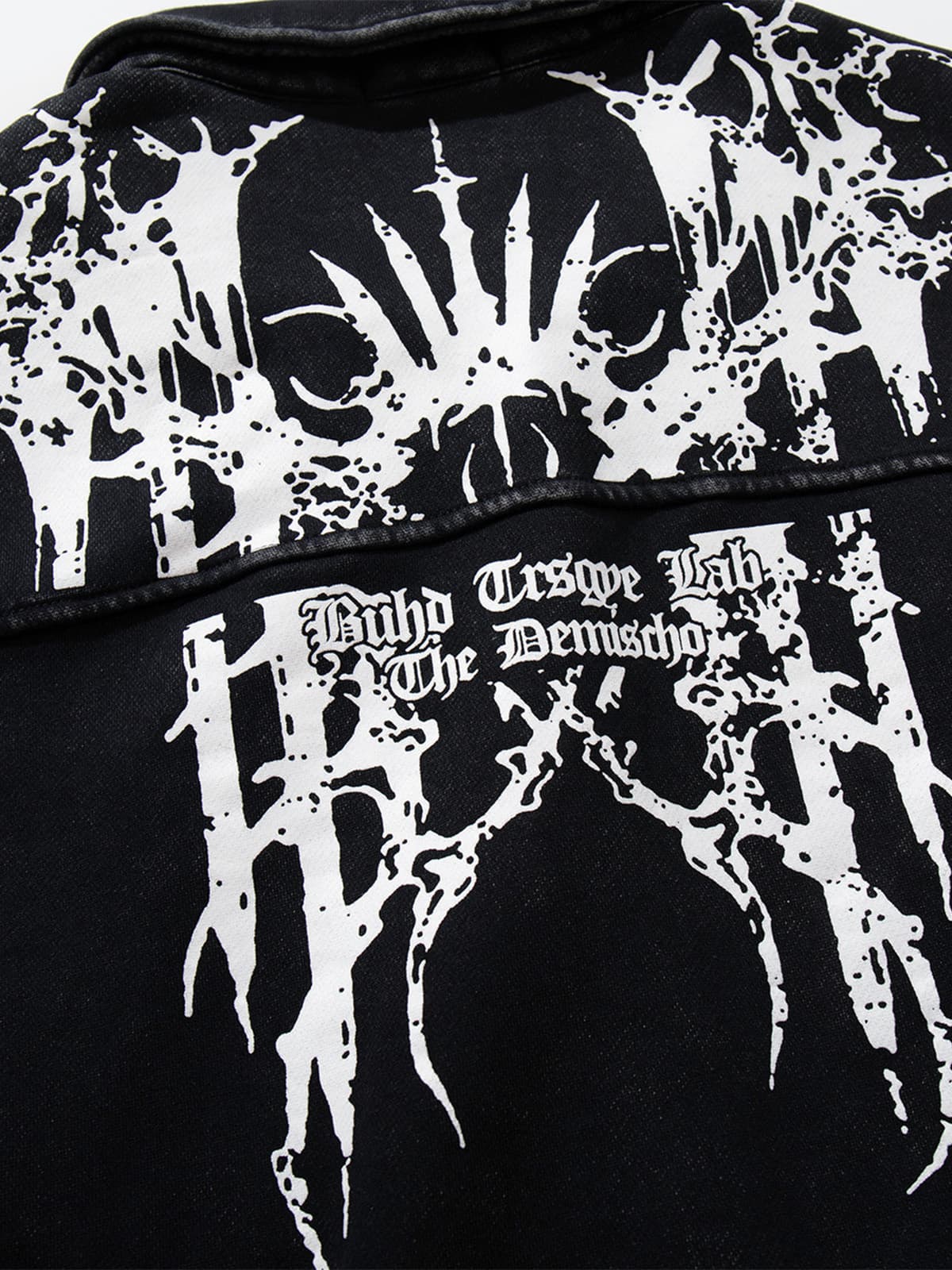 Retro Dark Skull Cross Print Lapel Zipper Jacket