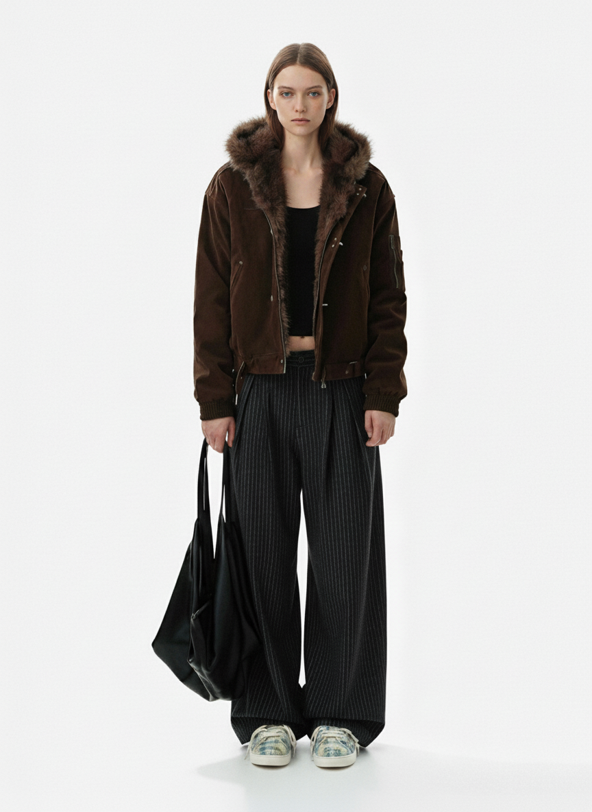 Vintage Pinstripe Pleated Wide-Leg Barrel Pants