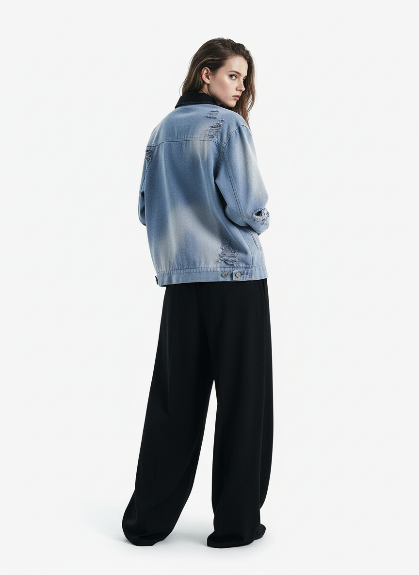 Ripped Graffiti Washed Zip Up Denim Jacket