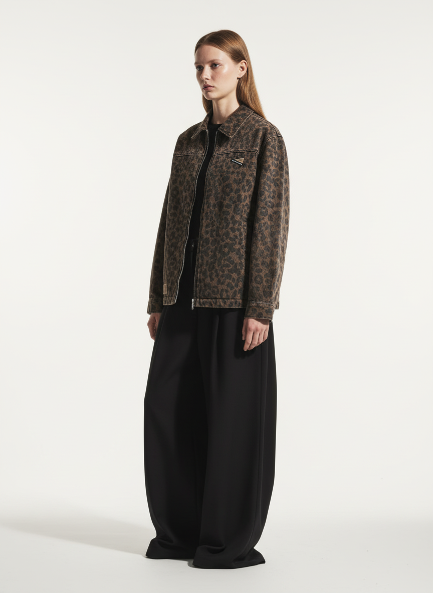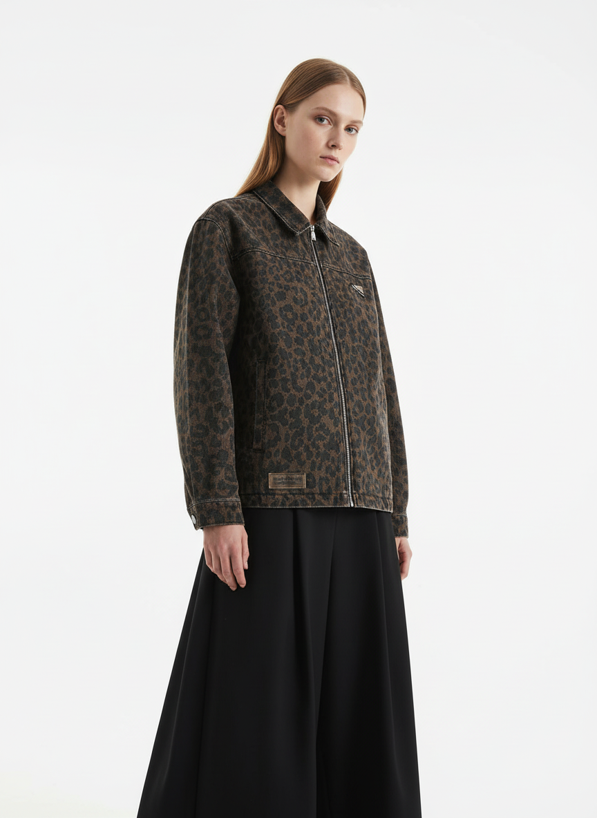 Vintage Washed Cheetah Denim Jacket