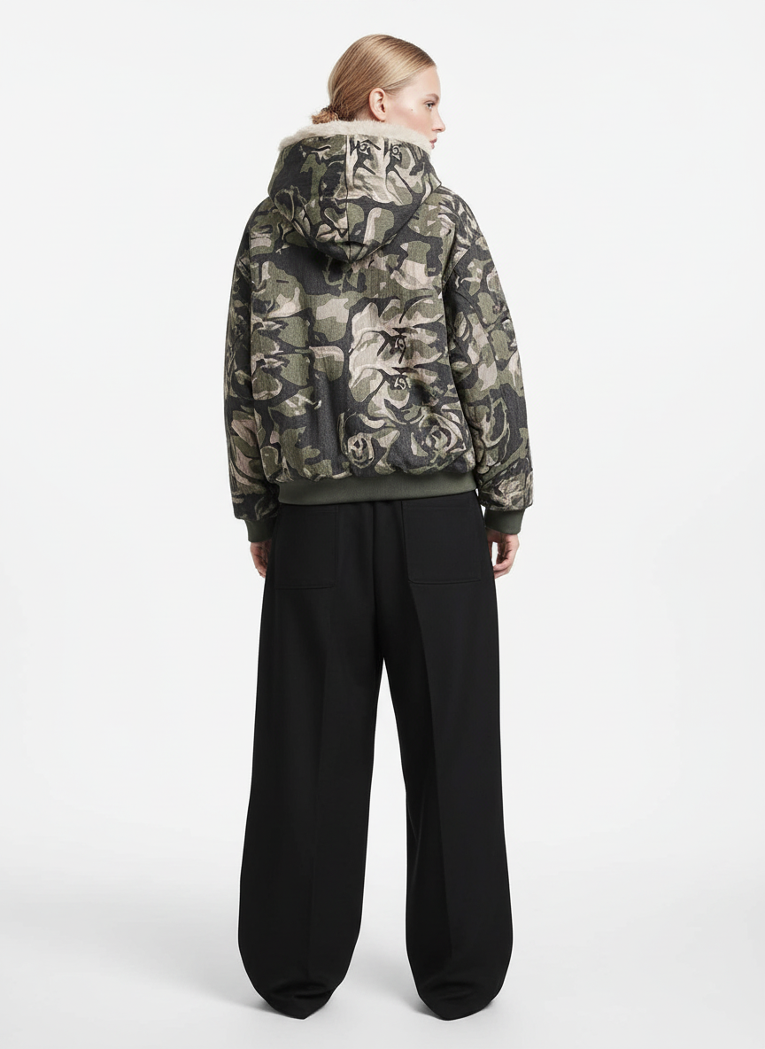 Camouflage Fur Hooded Jacket - 2353