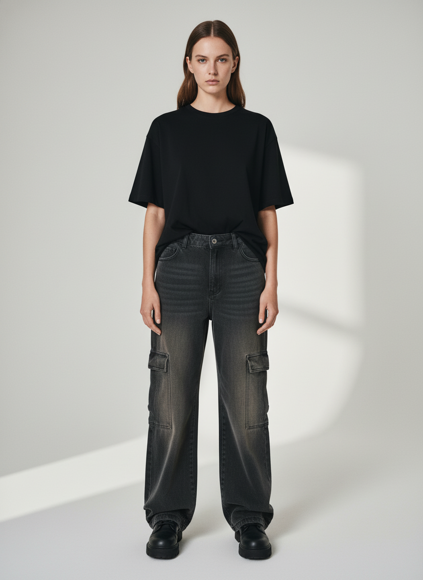 Washed Pleated Straight Jeans - 2263