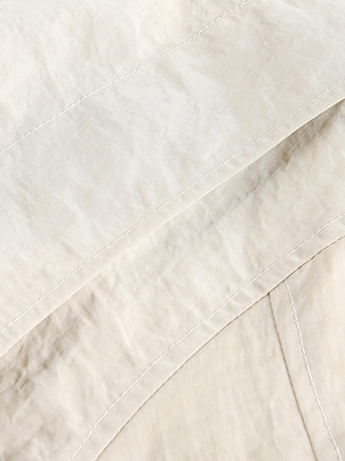 Utility Pleated Sleeve Fold-Over Collar Zip Up Jacket