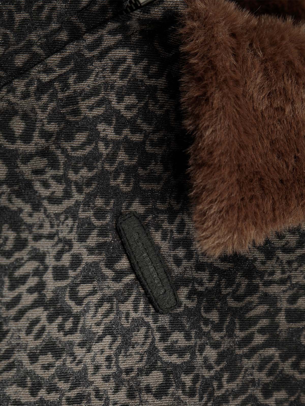 Vintage Leopard Print Faux Fur Collar Fleece Zip Up Vest