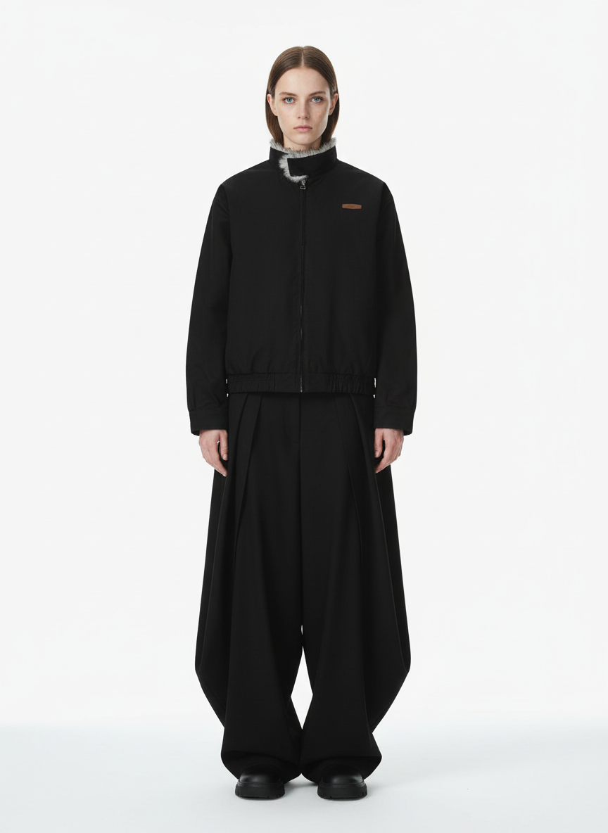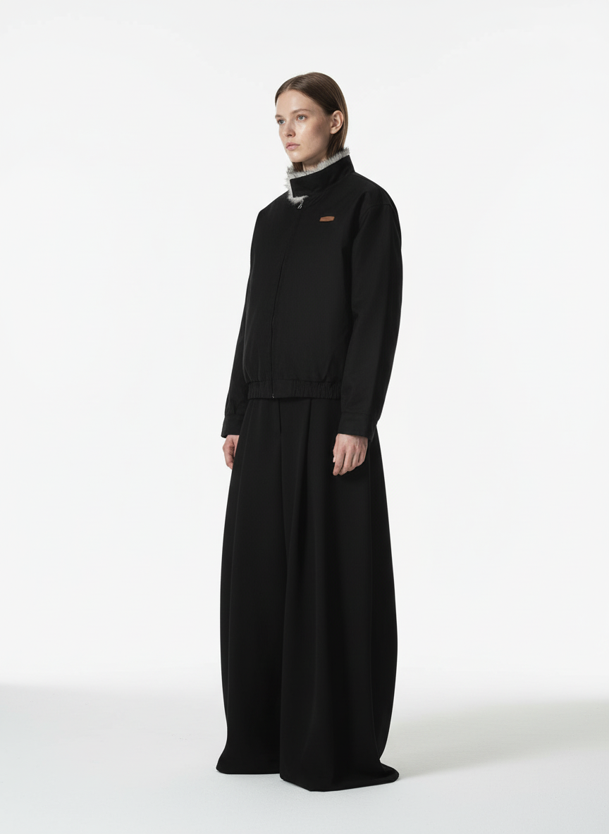 Vintage Stand Collar Fur Lined Bomber Jacket