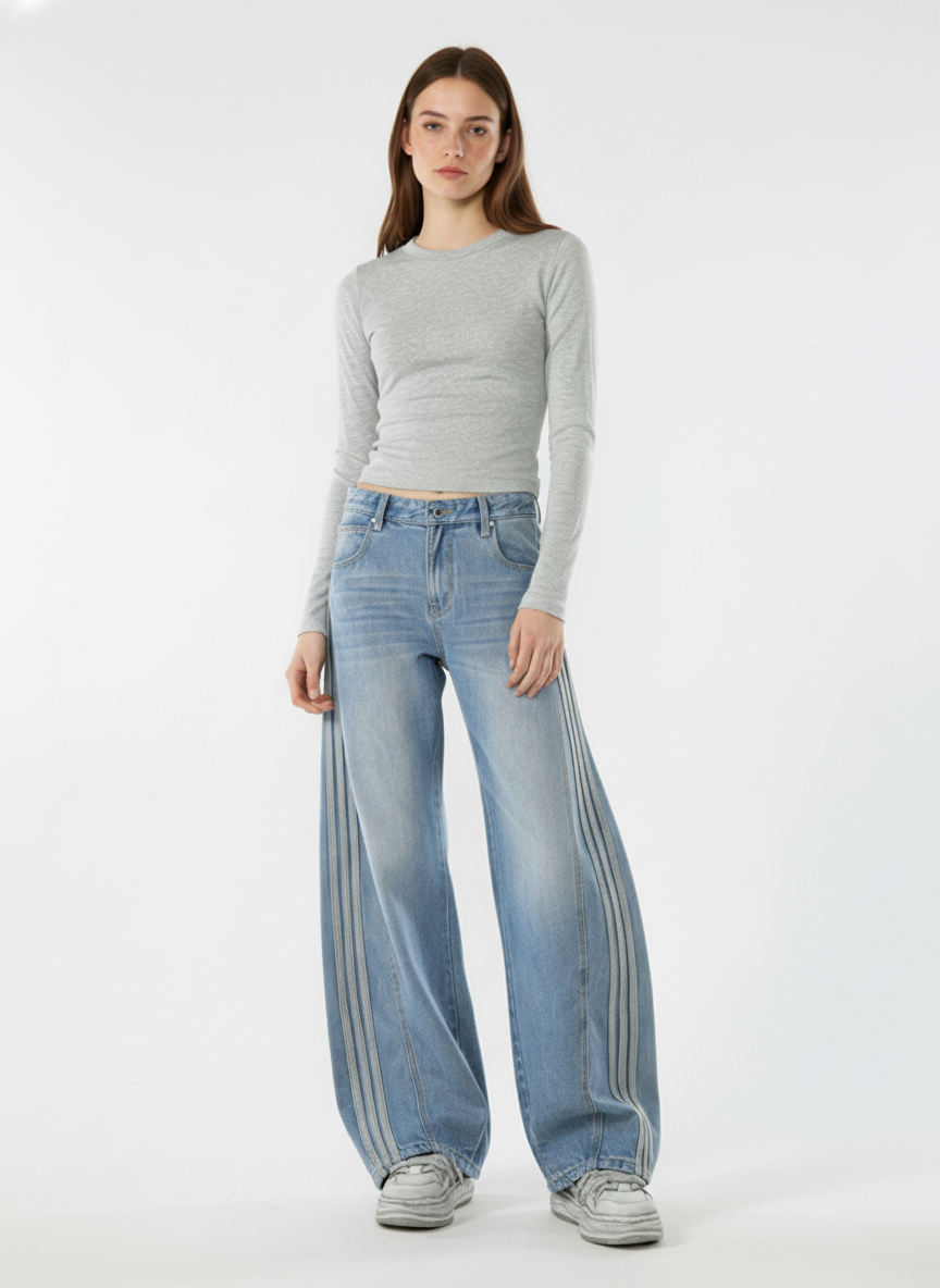 • Design Elements: Striped side panels, relaxed fit, classic five-pocket design