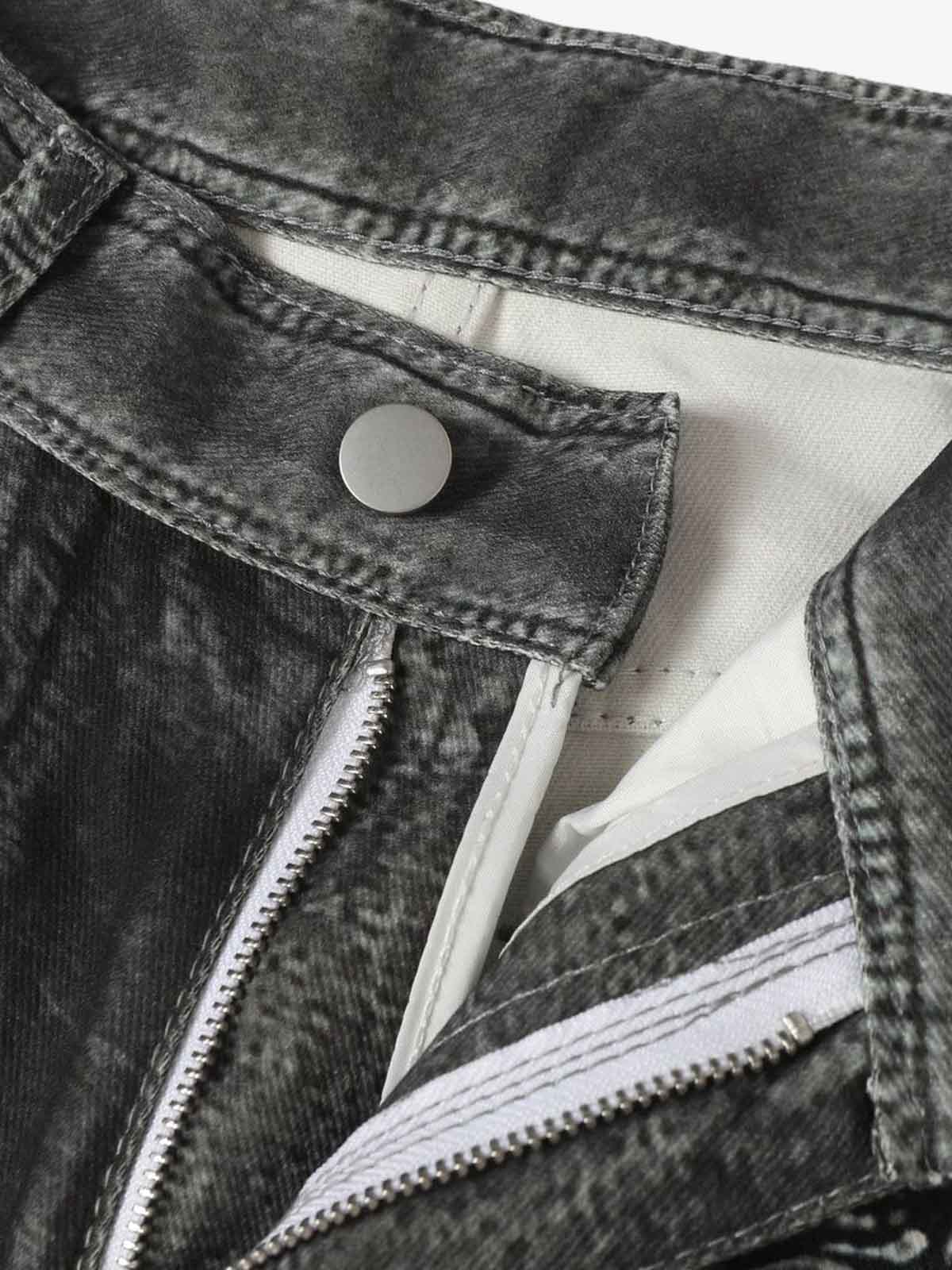 • Detail Features: Gothic Print, Chain Motif, Distressed Effect, Two Side Pockets