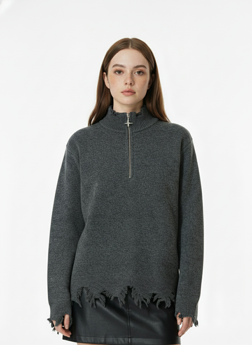 Distressed Quarter Zip Sweater