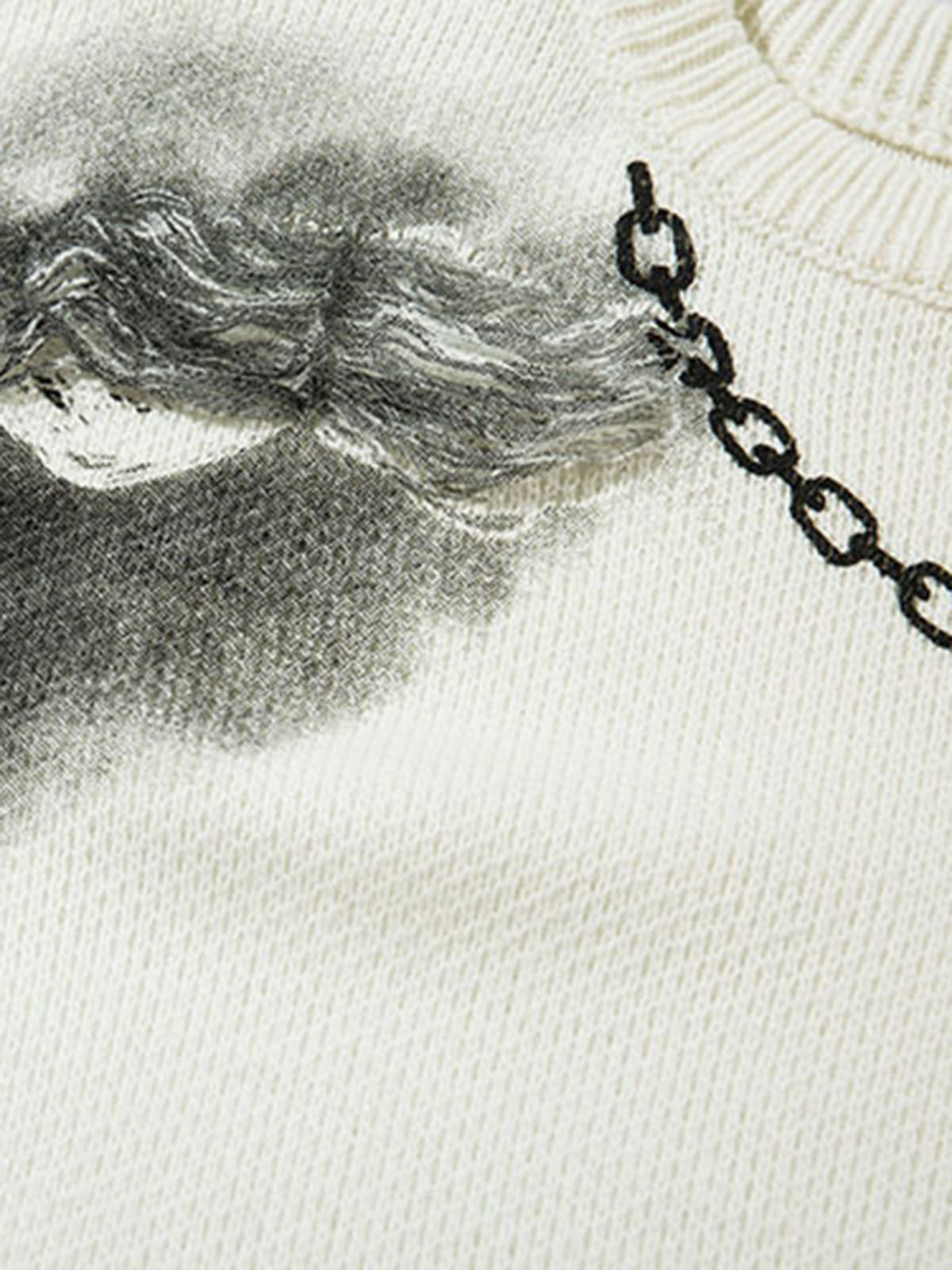 Chain Jacquard Spray-Painted Hole Round Neck Sweater