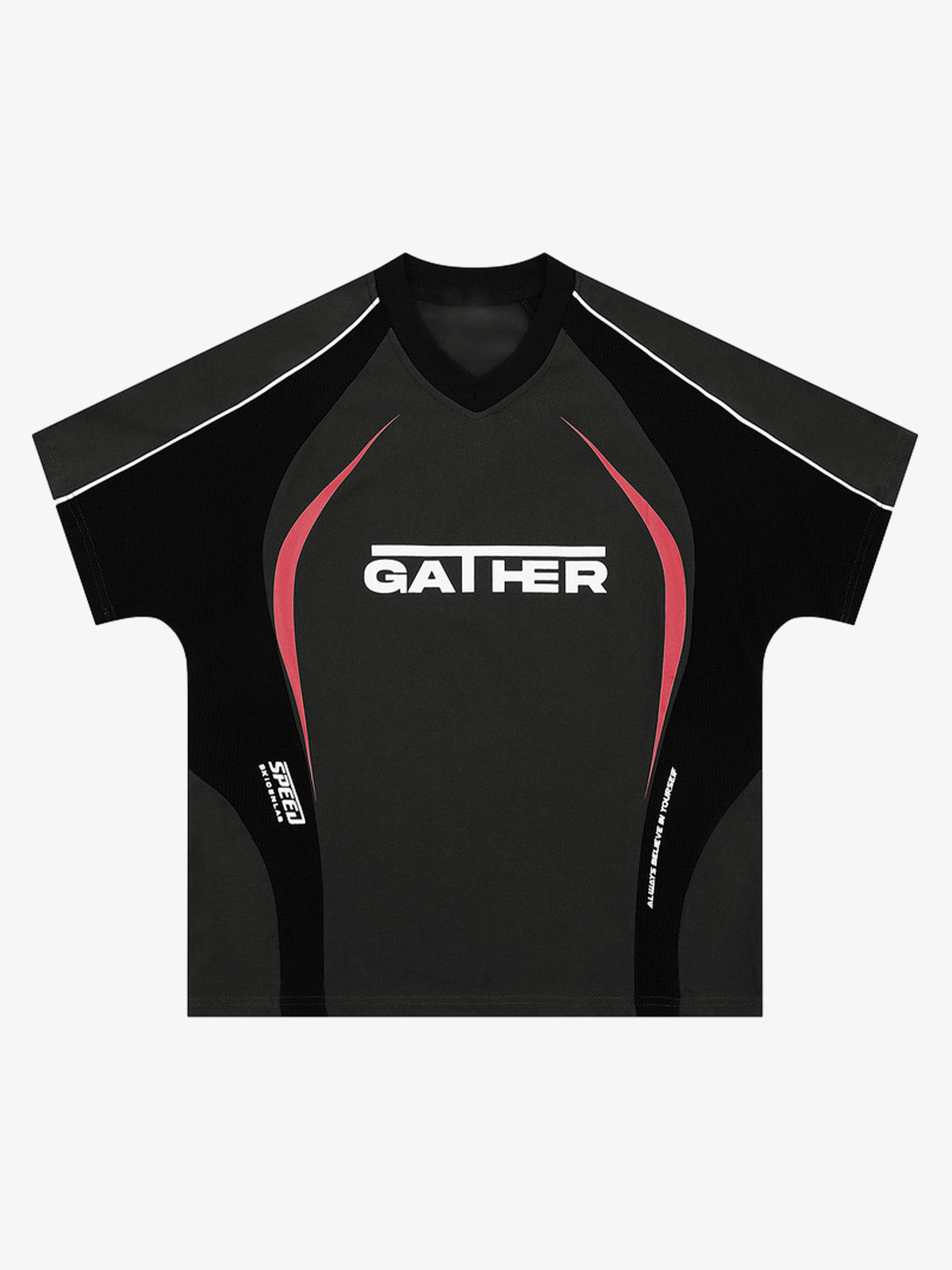 Contrast Color Stitching V-Neck Short-Sleeved T-Shirt
