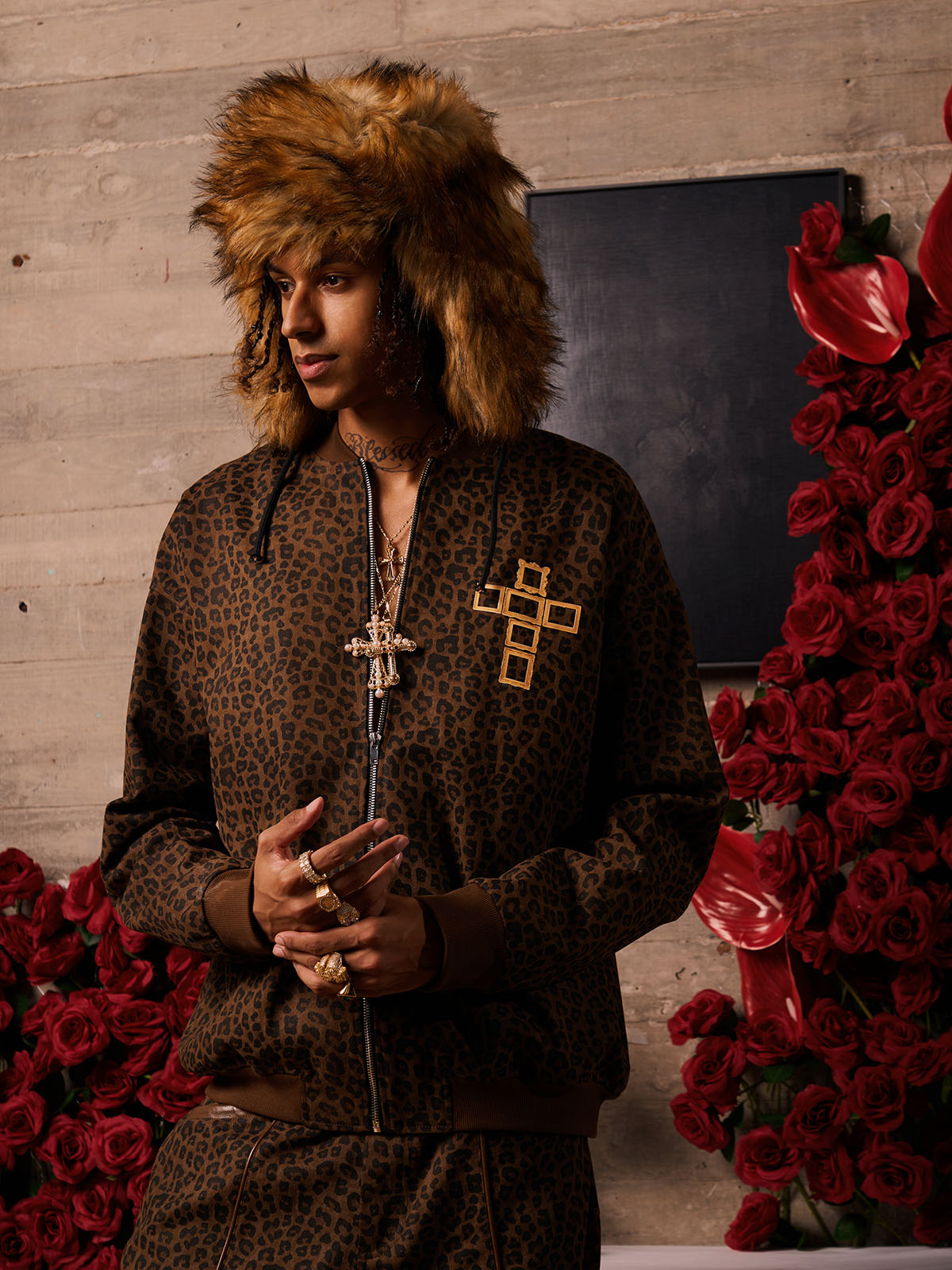 • Design Elements: Bold cross emblem, stylish lettering, animal print pattern