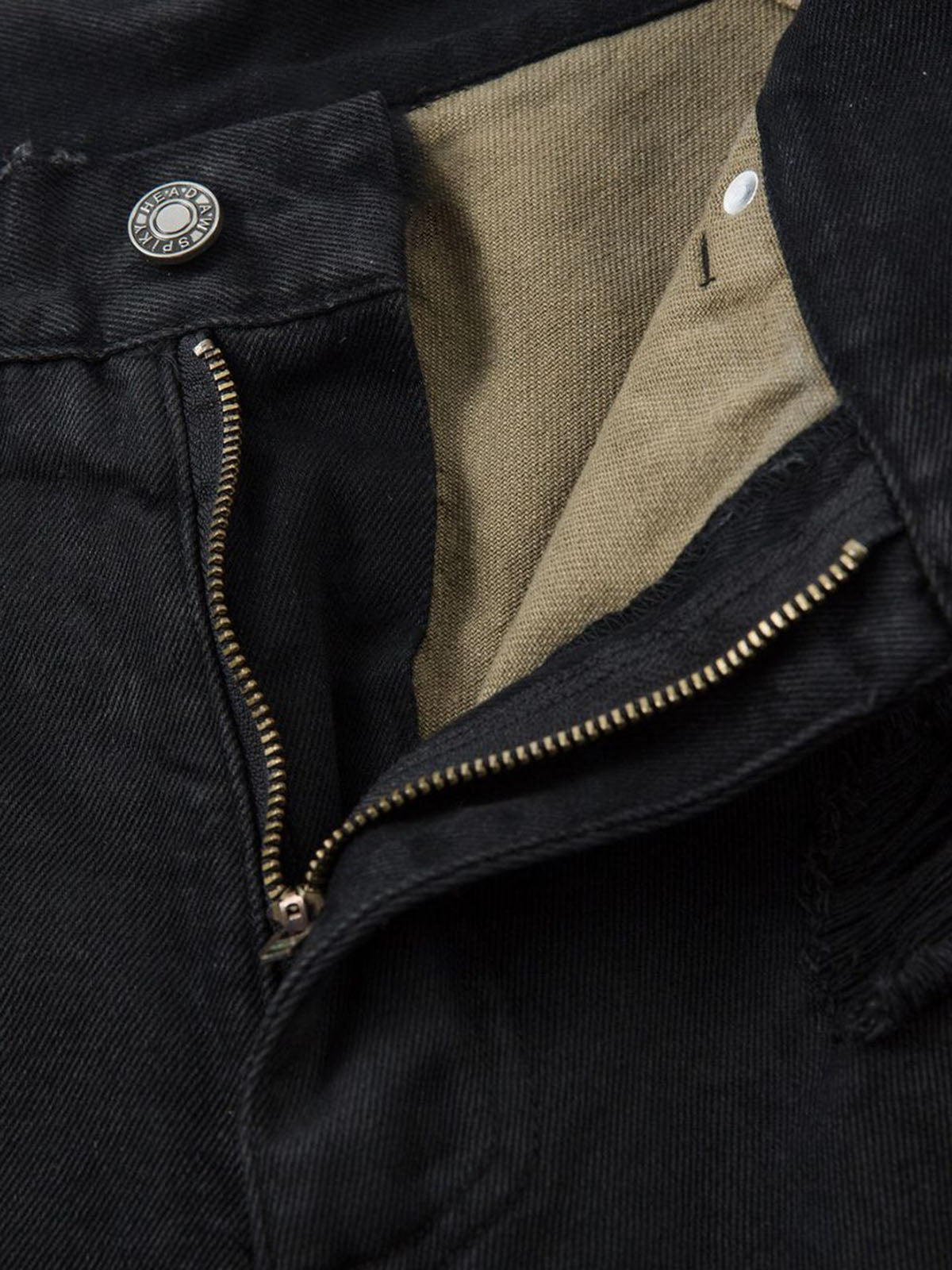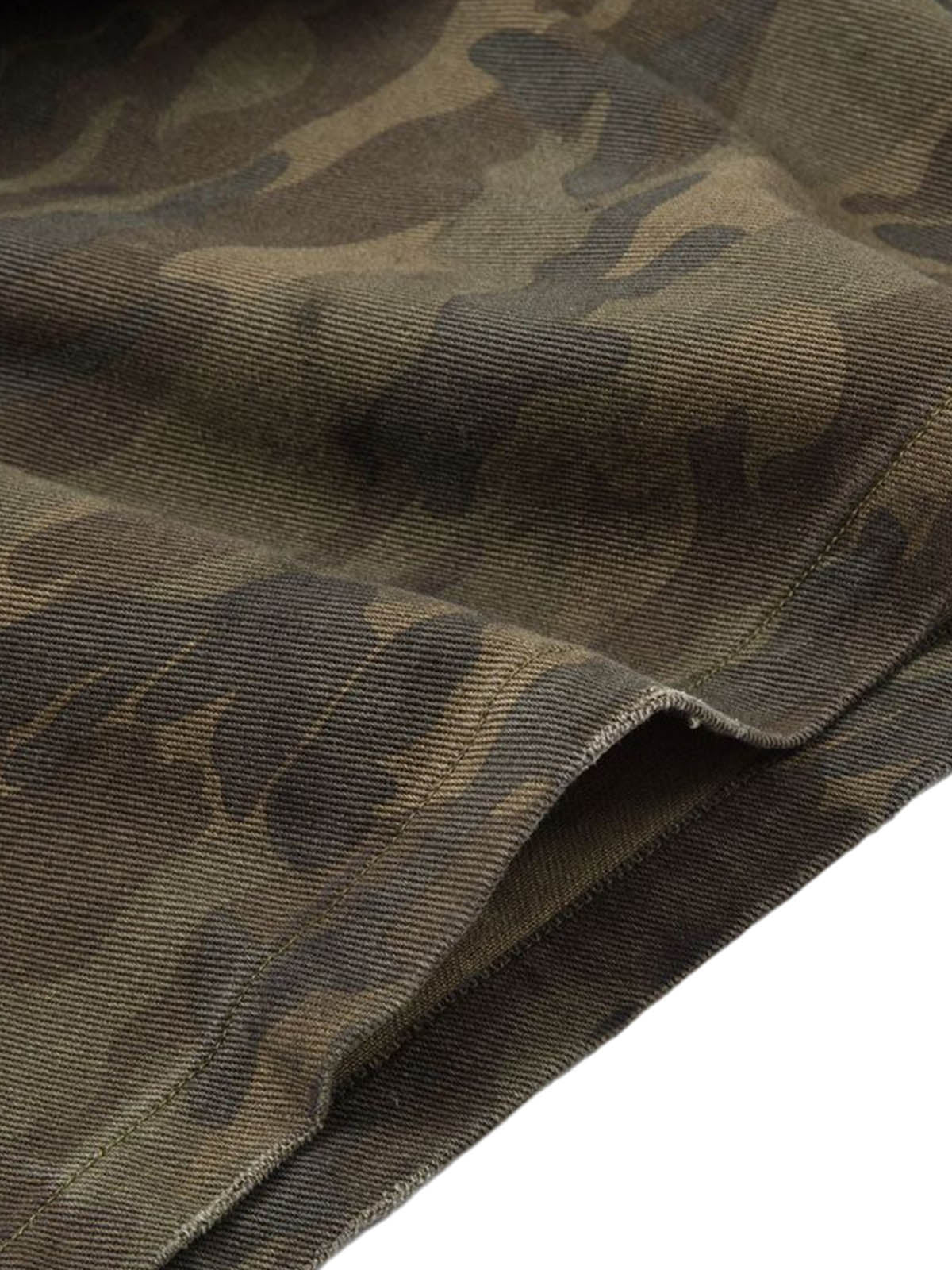 • Design Elements: Ripped details, camouflage lining, frayed hem