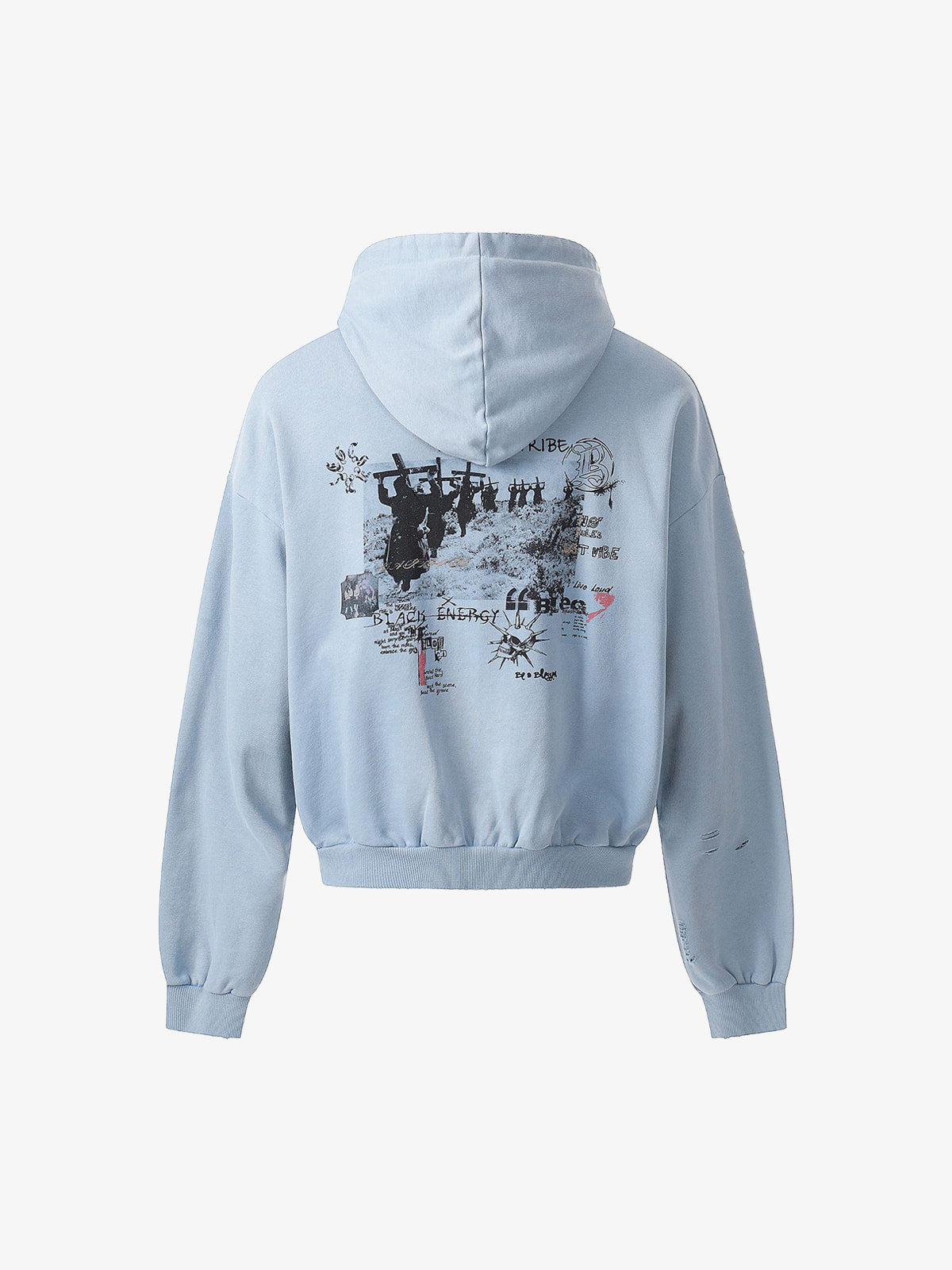 Distressed Graphic Print Zip Up Hoodie